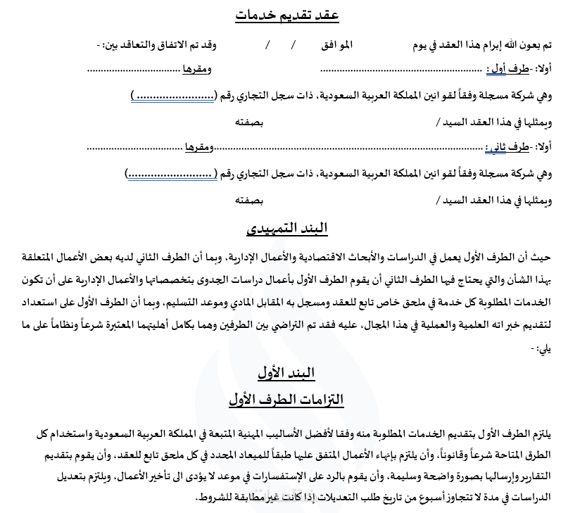الخدمة -- عقد واحد فقط مكون من 250 كلمة .
