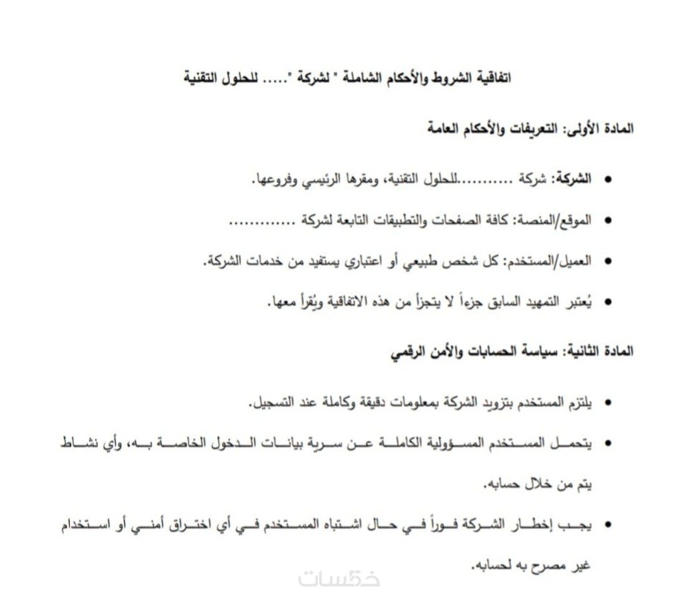 تسليم ملف للاحكام والشروط او سياسة الخصوصية بشكل نهائي بحدود 600 كلمة بتنسيق قانوني سليم.