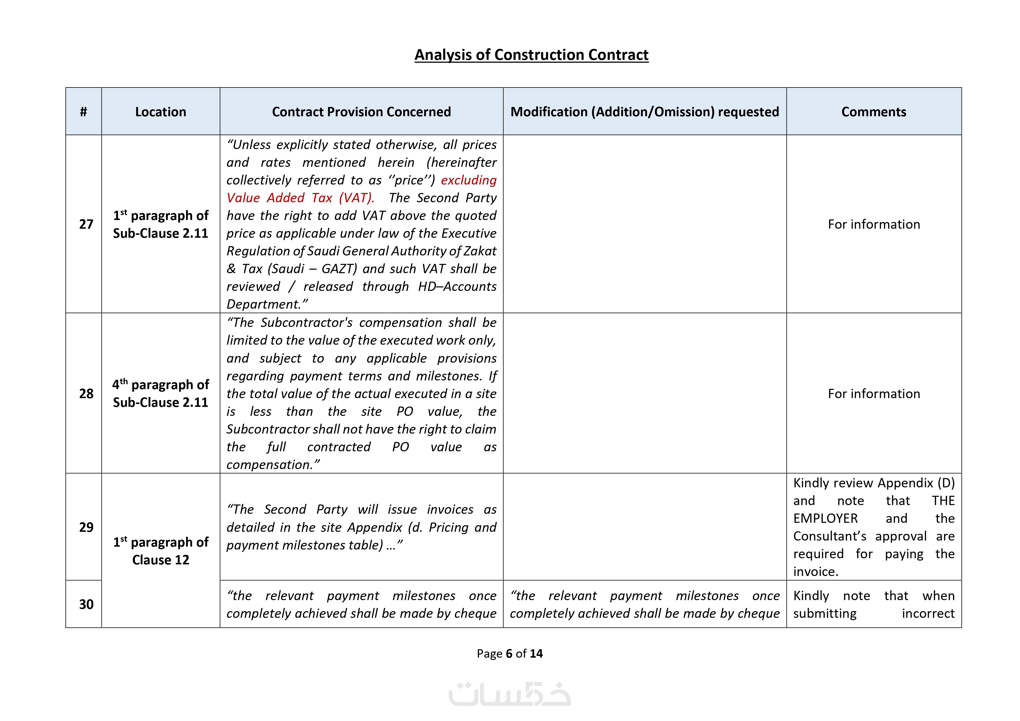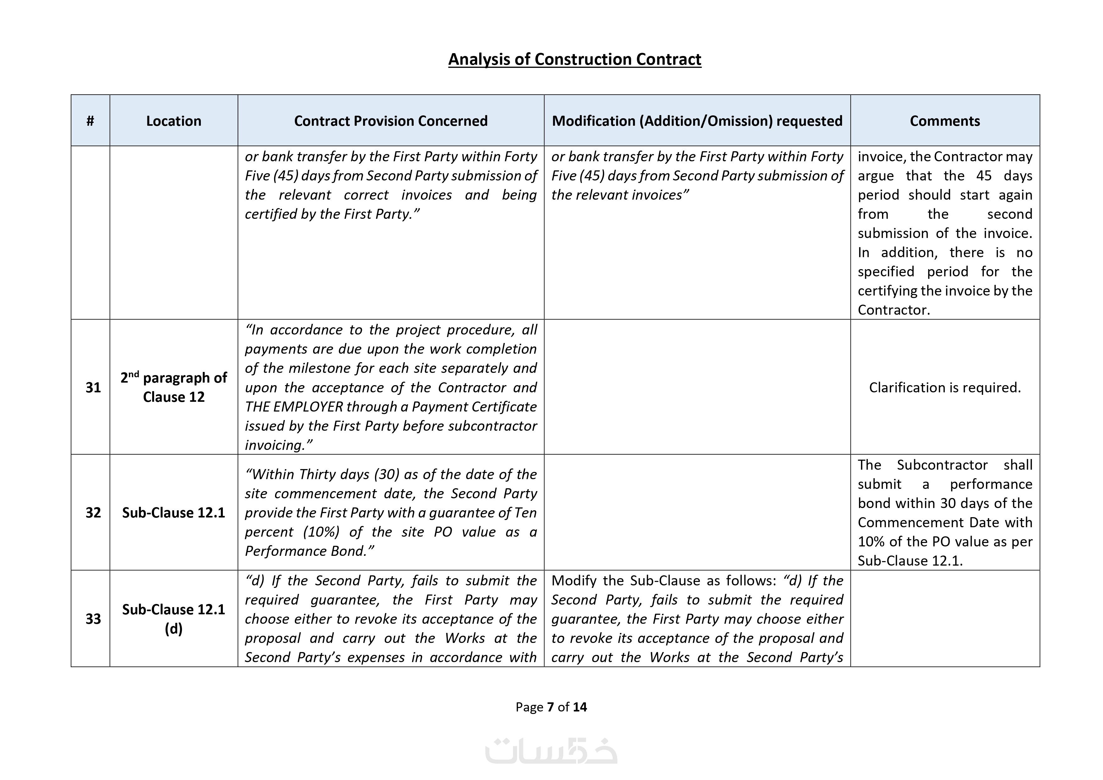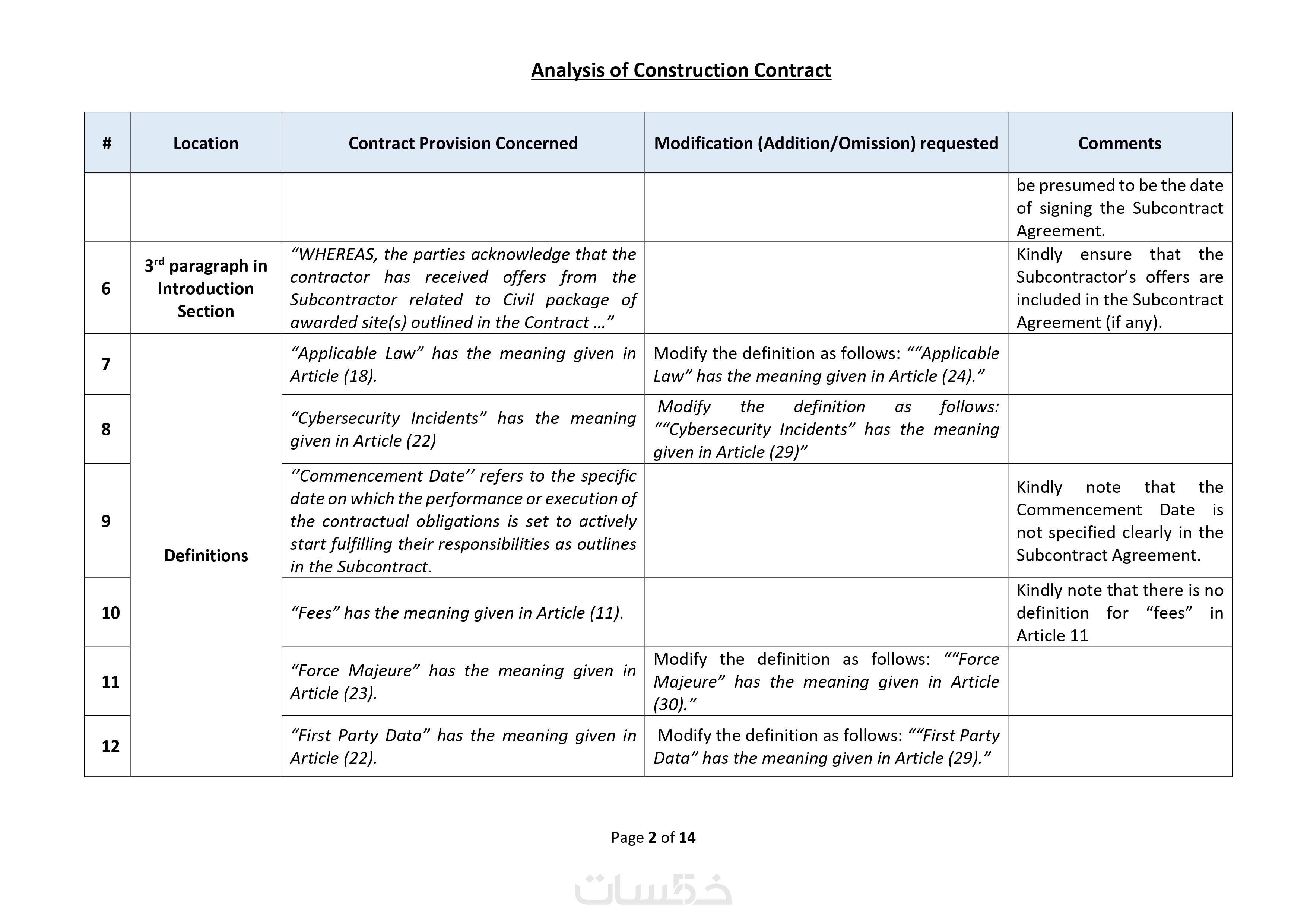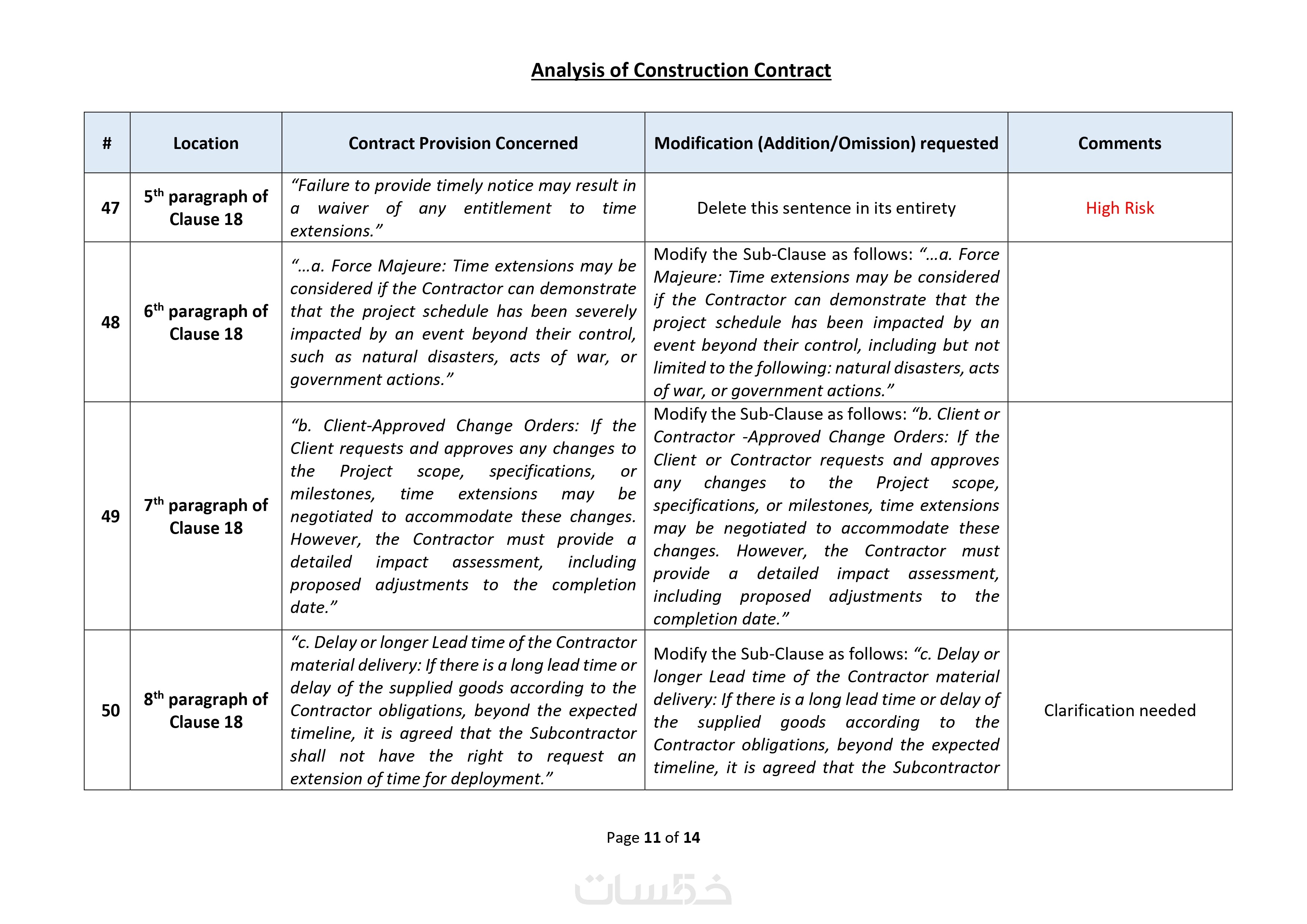 تزويدك بتوصيات عملية لتعزيز موقفك التعاقدي.