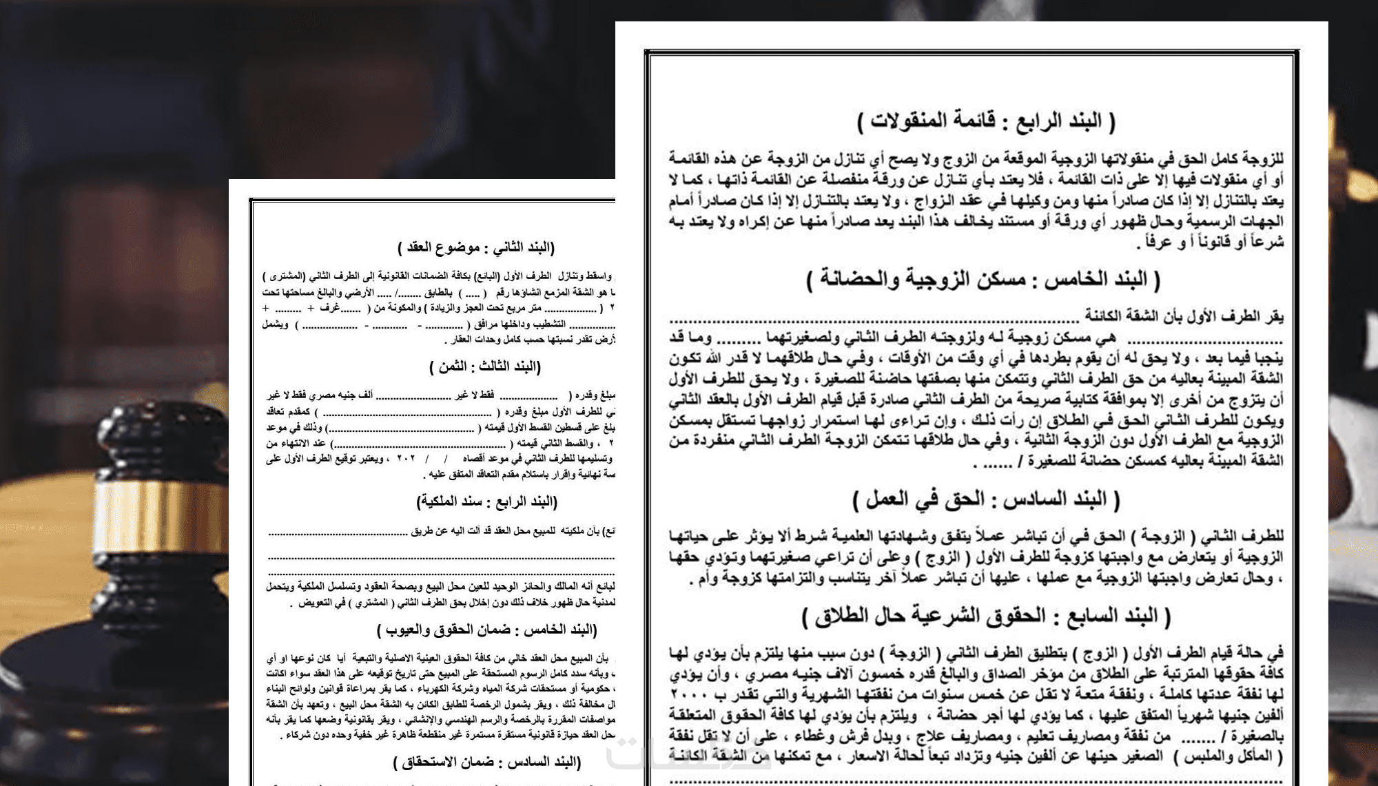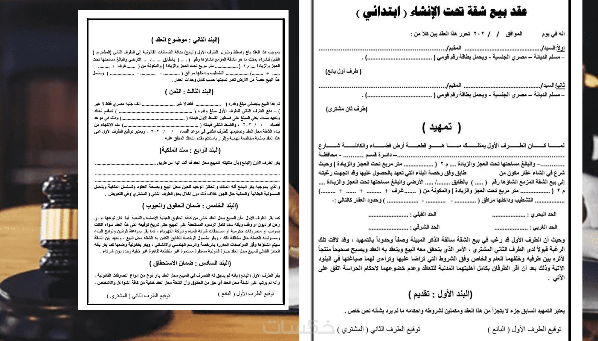 عقود البيع والشراء: (عقارات، أراضي، سيارات، بضائع).