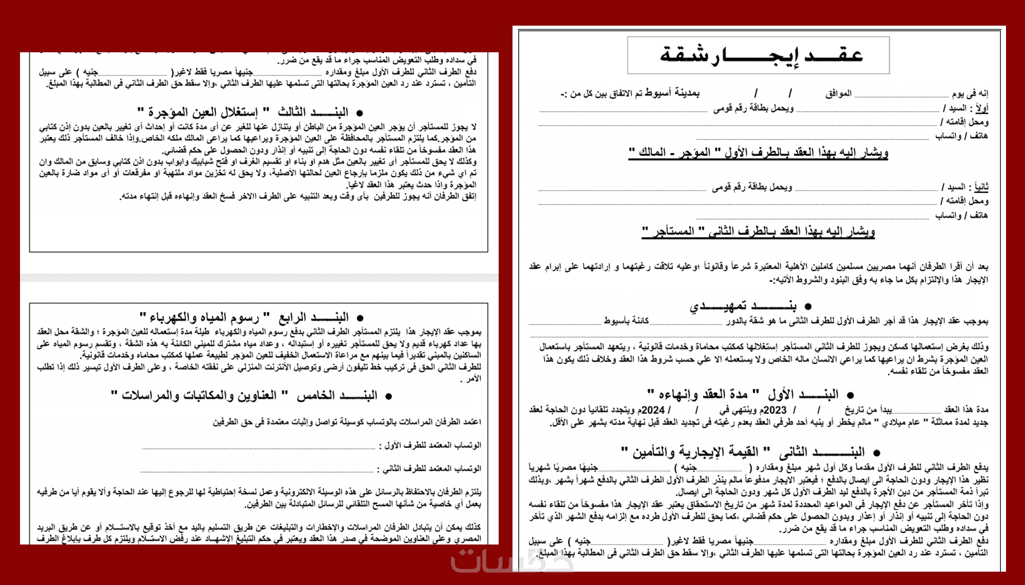 عقود الإيجار: (سكني، تجاري، إيجار تمويلي).