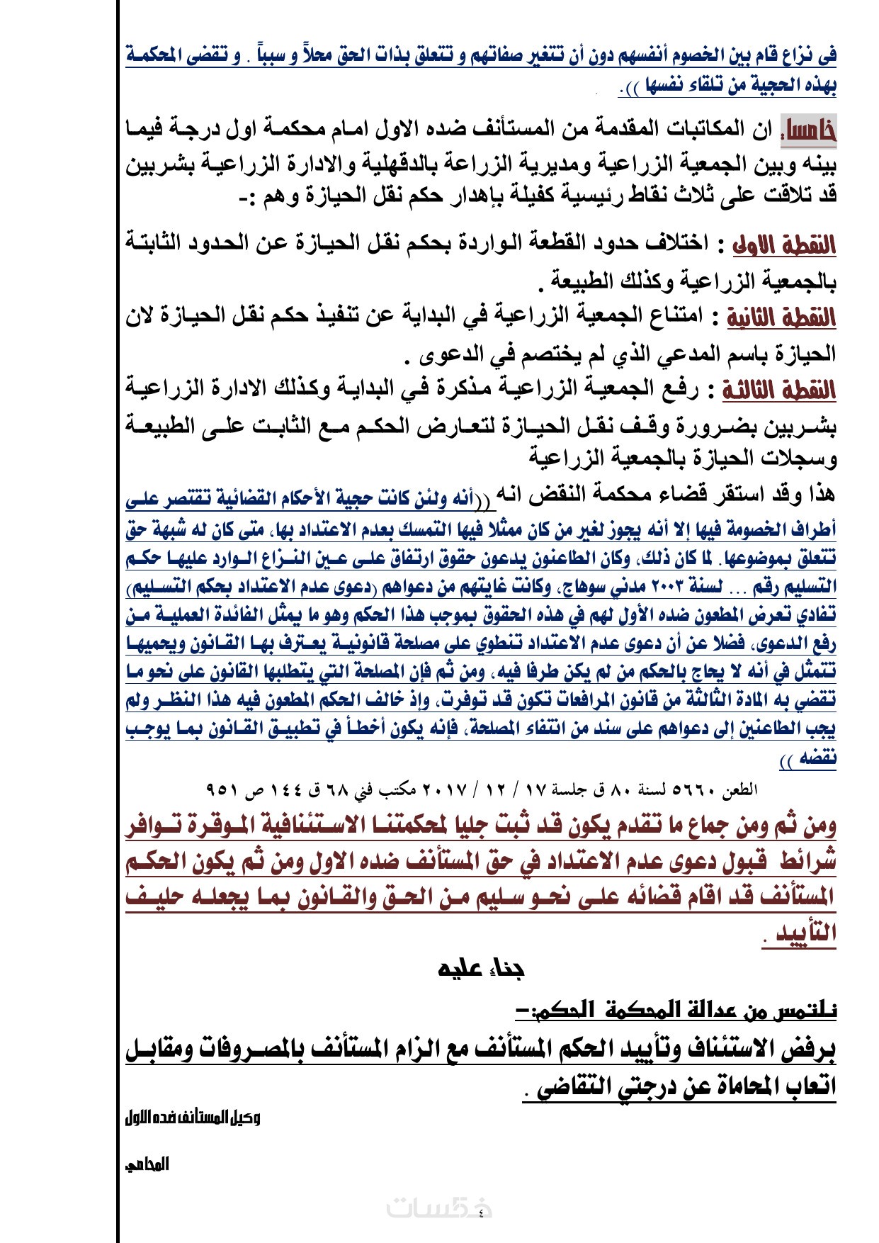 كتابة مذكرة 10 ورقات مدعمه باحكام النقض تشمل تحليل قانوني ومفصل