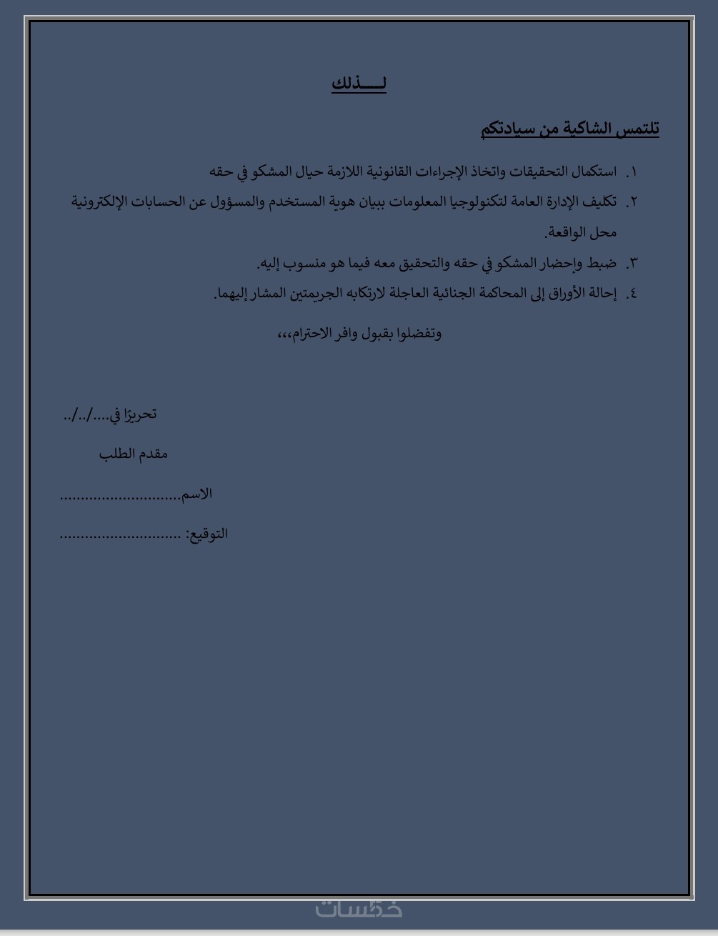 - طرح الأفكار والمعلومات في المستند بصورة واضحة وصريحة دون إسهاب أو تكرار مع الحرص على ترابط الفقرات وتسلسلها الزمني والمنطقي واستخدام المصطلحات الصحيحة واللغة القانونية المناسبة للجهة التي يقدم إليها المستند.