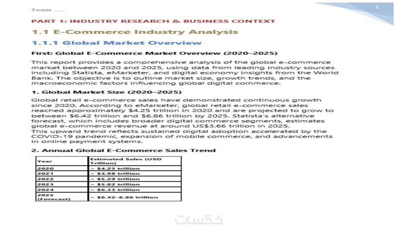 تحليل السوق (2020-2025): رصد حجم النمو العالمي والمحلي بالاعتماد على بيانات eMarketer وStatista.