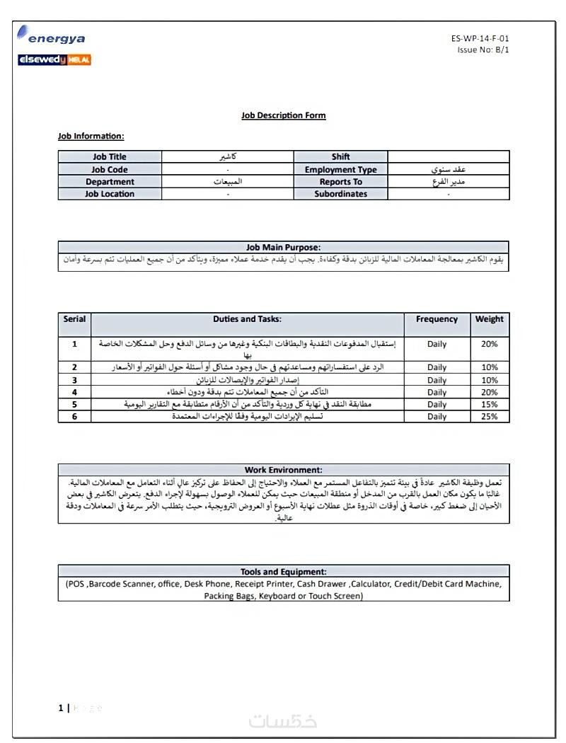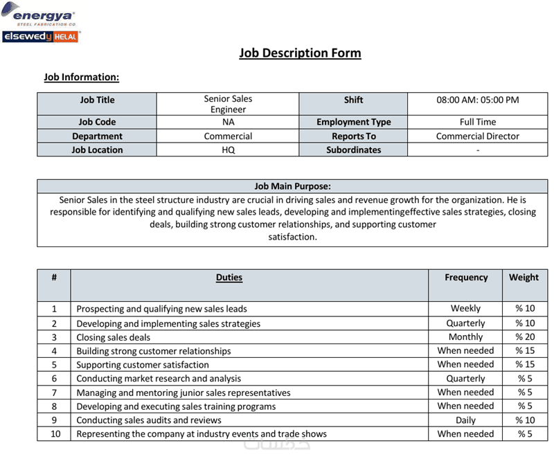 تصميم وصف وظيفي للمهام والمسؤوليات و تصميم KPIs شيت لمتابعة أداء الموظف شهريا.