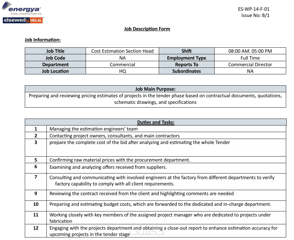 تكلفة الخدمة: لكل وصف وظيفي.