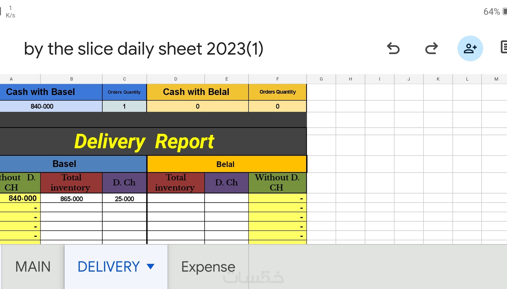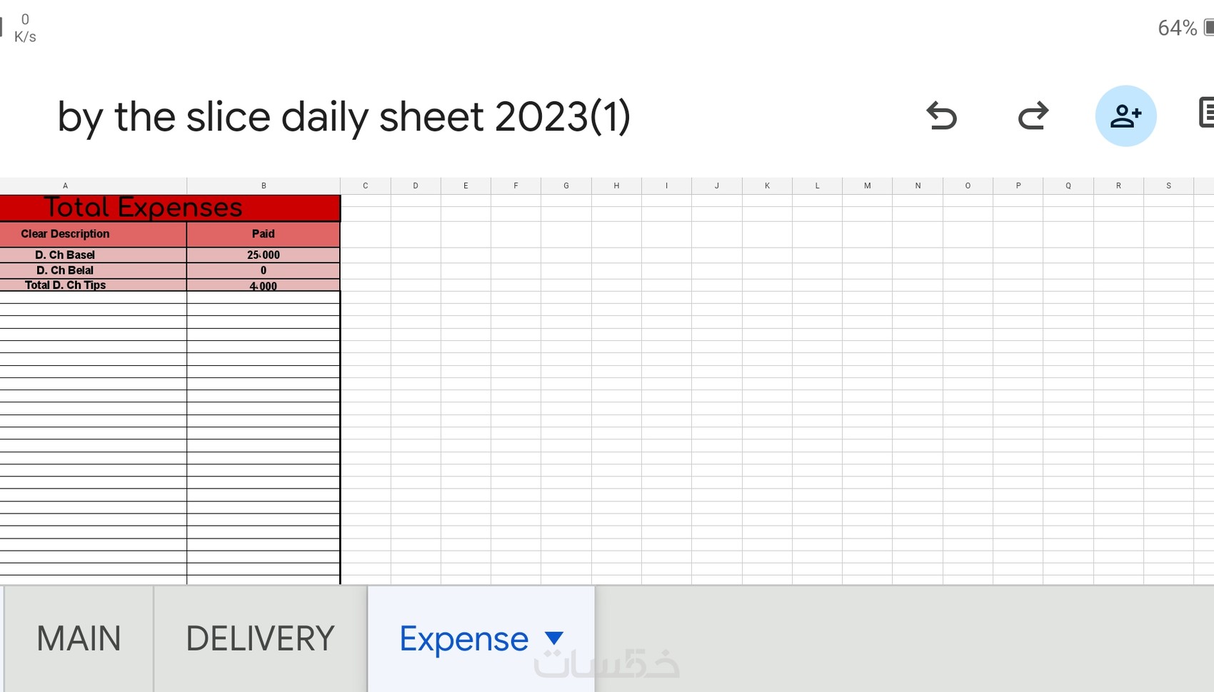 - ورقة expense تحتوي على :