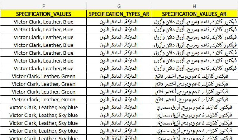عدد المنتجات: إدخال بيانات 100 منتج تشمل: