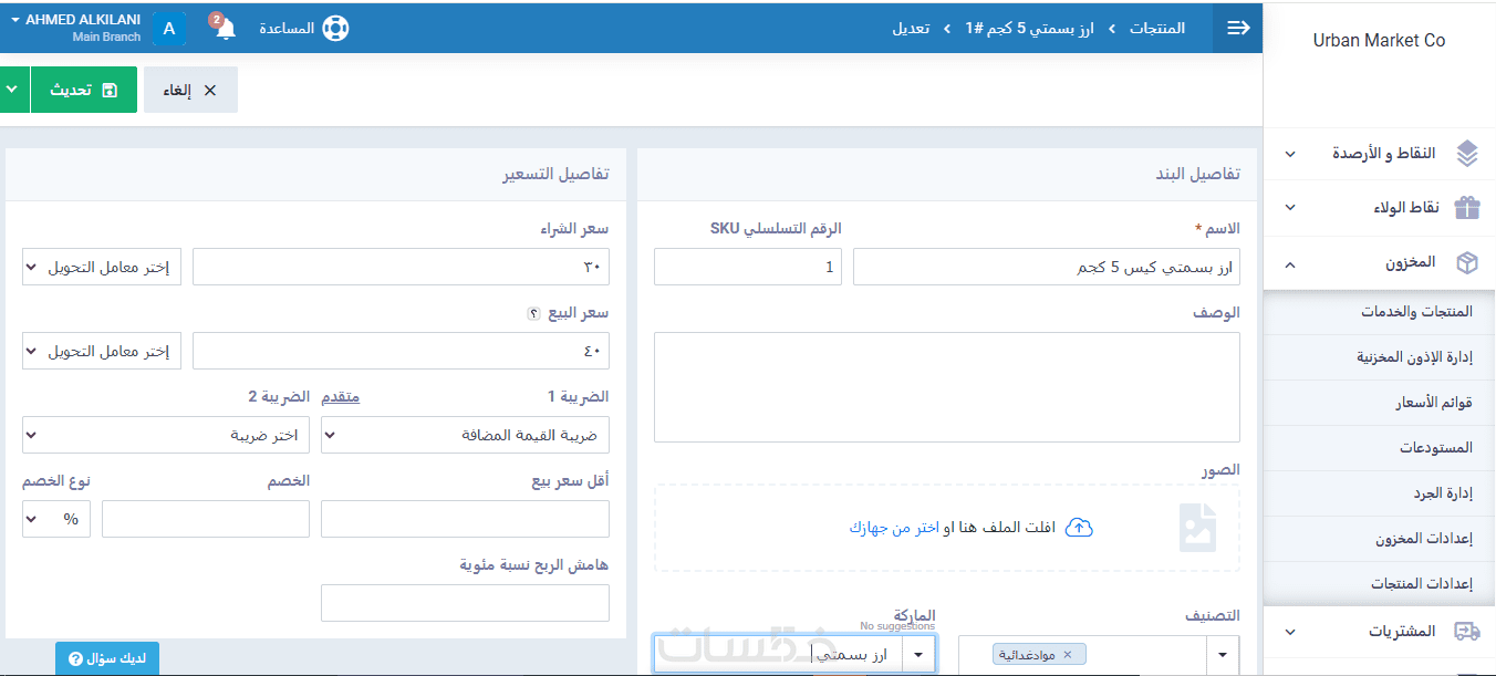 * ادخال حتى 20 عنصرًا من المنتجات والخدمات والعملاء والموردين بدقة عالية