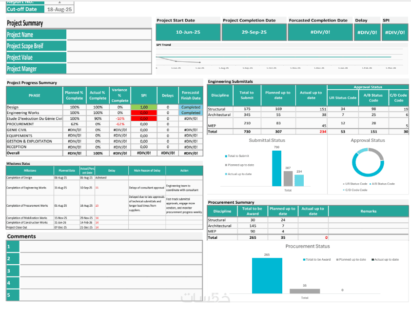 تصميم نماذج لمتابعة الأشغال، متابعة الكلفة، متابعة المصاريف و الاستهلاك، متابعة الفوترة و التخليص ..: للنموذج