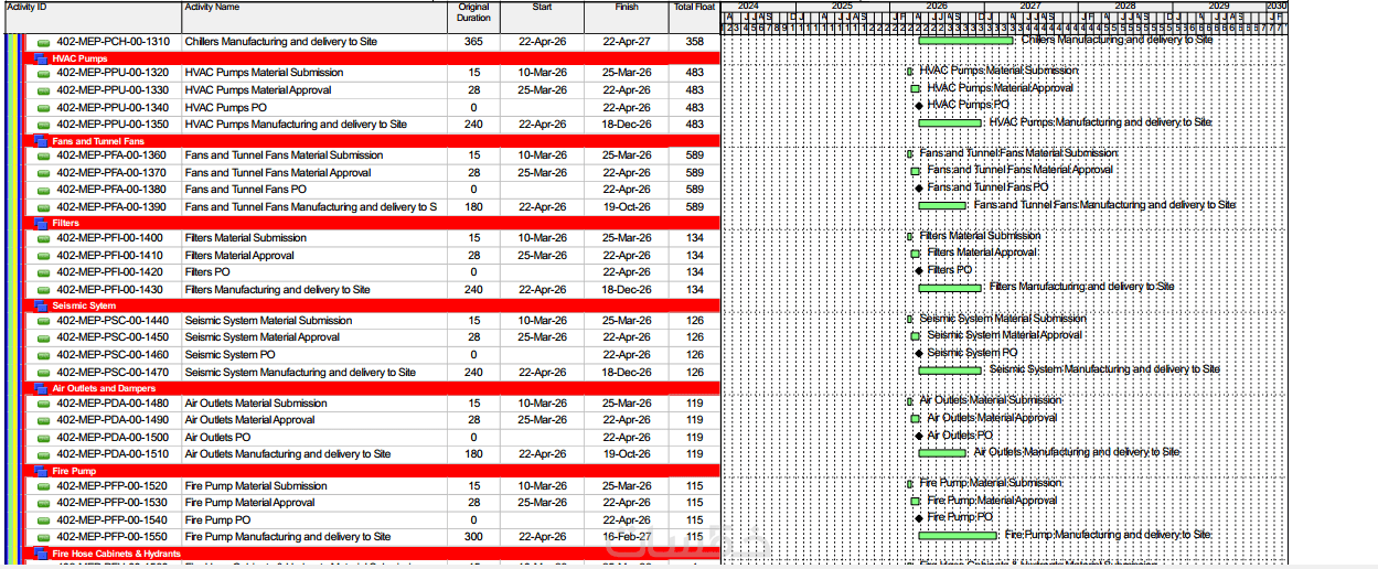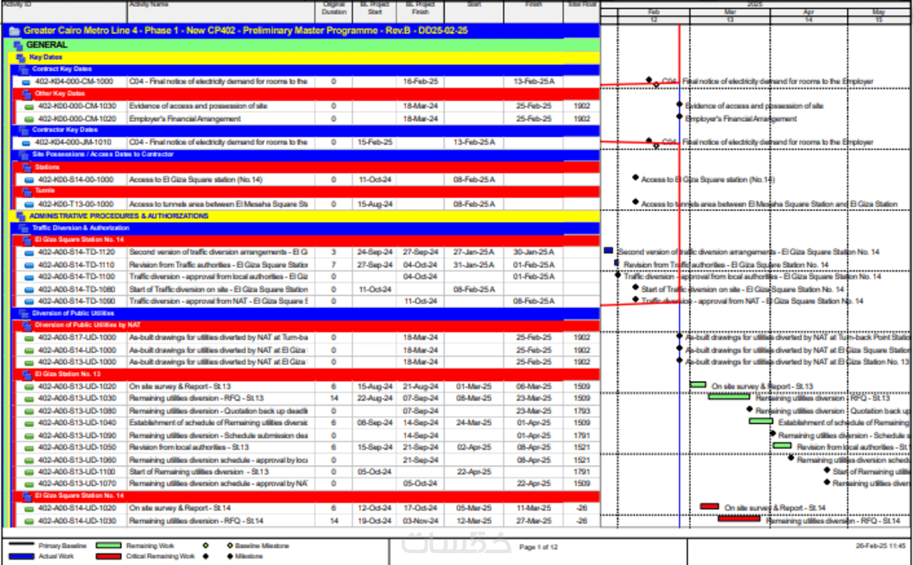 الخدمة تشمل اعداد 25 نشاط مع توضيح المسار الحرج والمدد الزمنية لكل نشاط والاخراج بصيغة xer + pdf