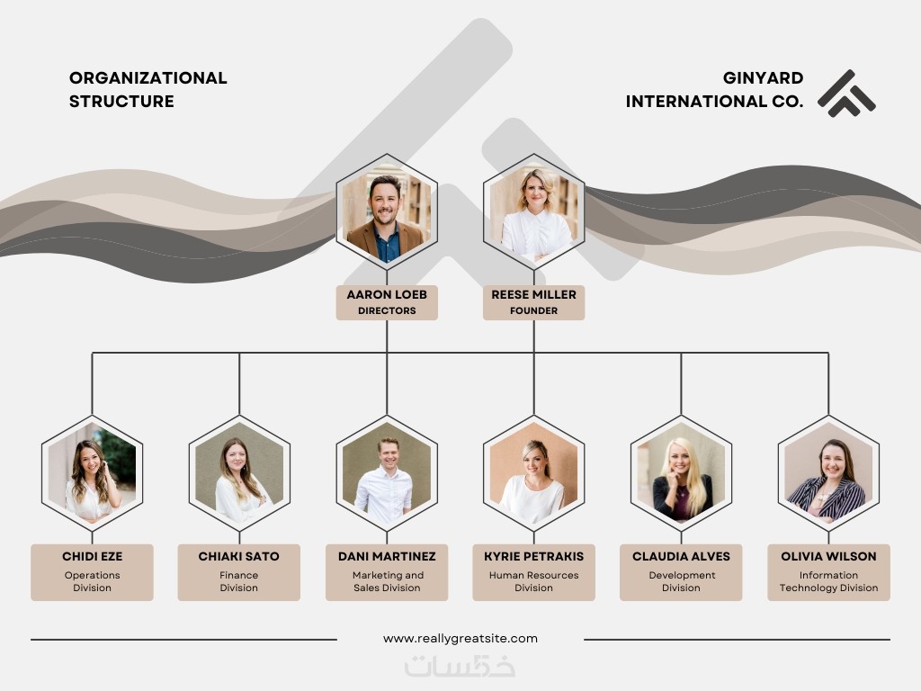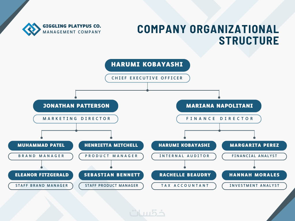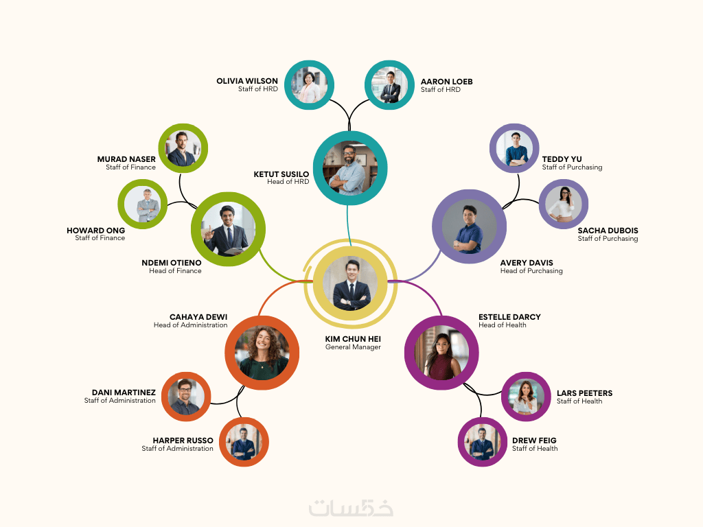 تصميم هيكل تنظيمي احترافي يوضح التسلسل الإداري والمسؤوليات لكل قسم