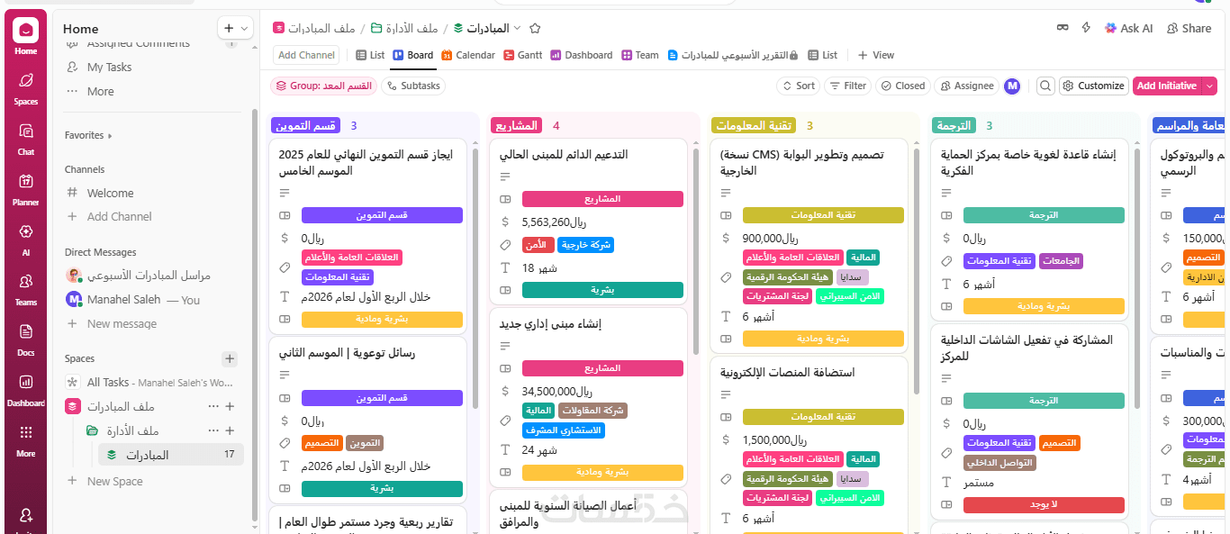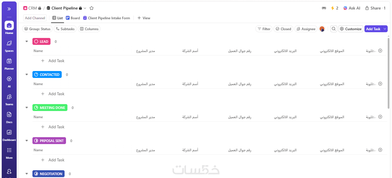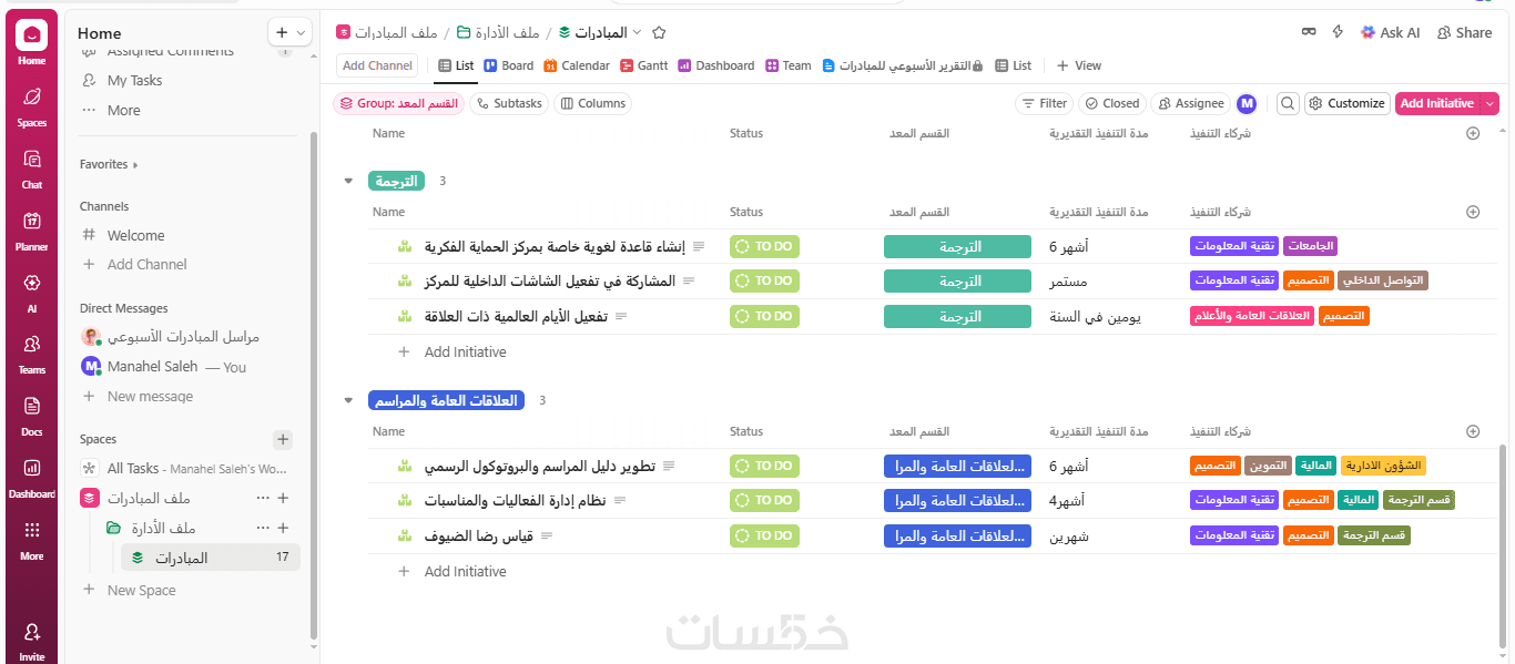 - إعداد وهيكلة المشاريع والفرق داخل ClickUp.