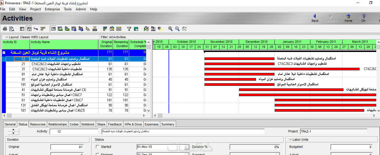 ** إعداد الجدول الزمني للمشروعات باستخدام برنامج Primavera P6