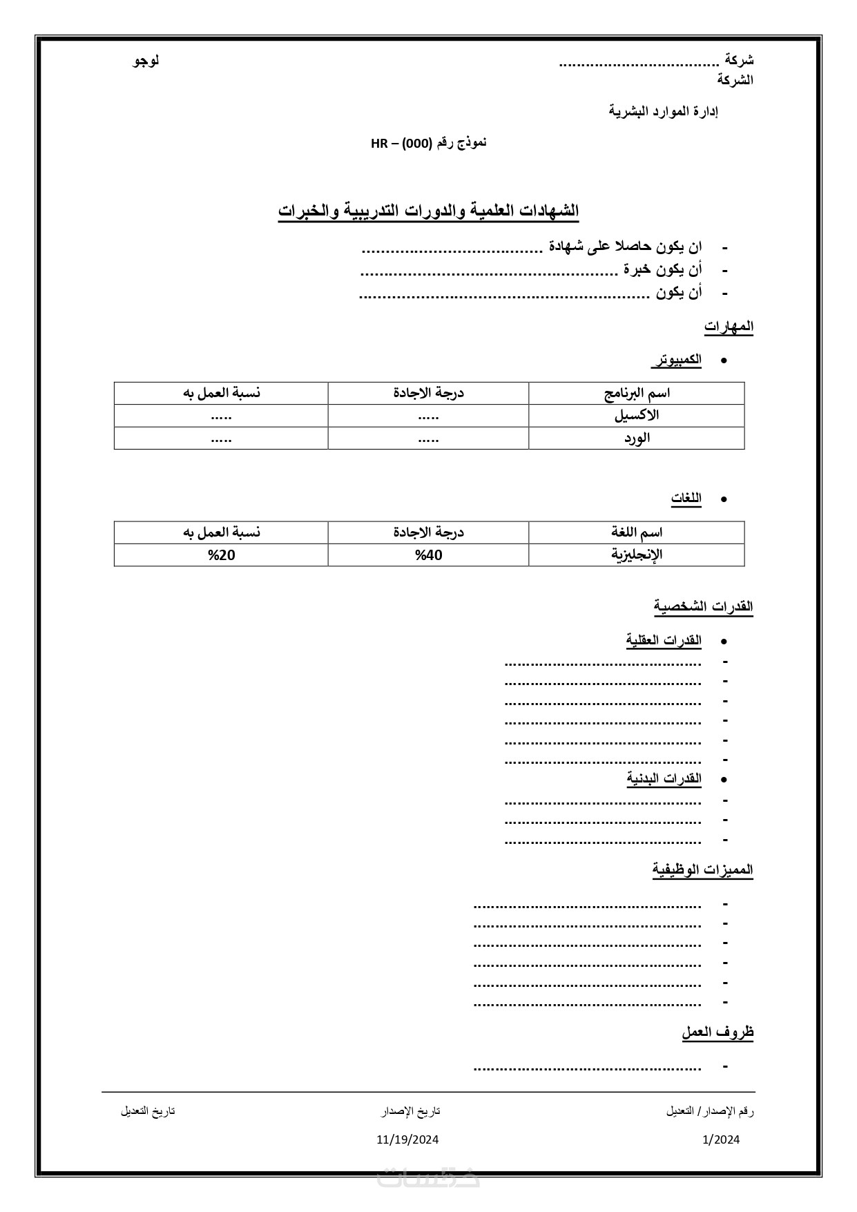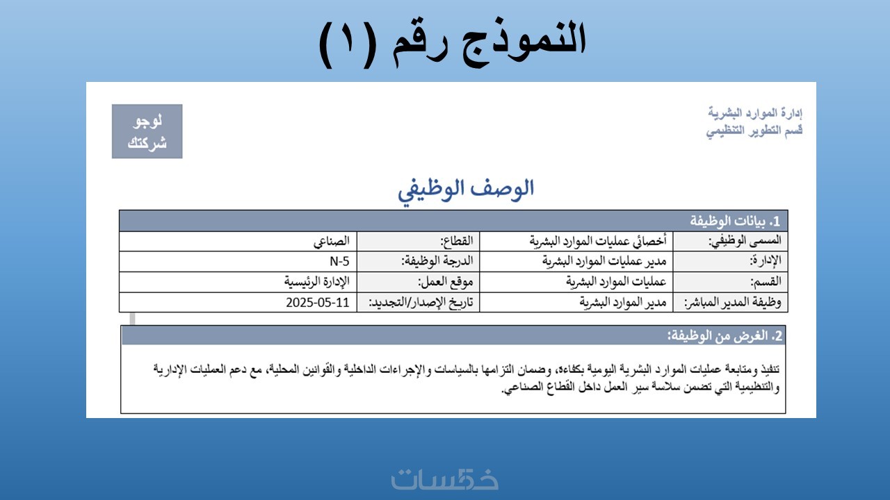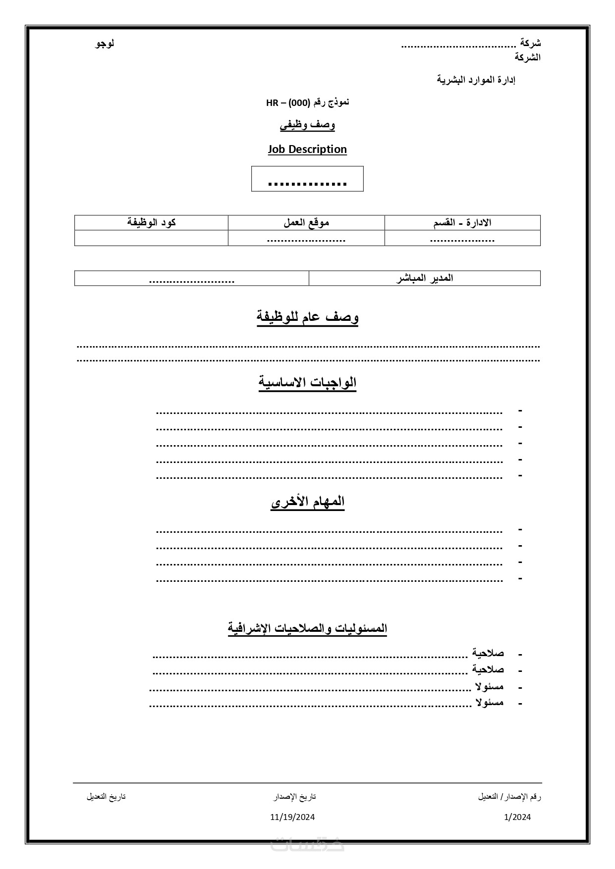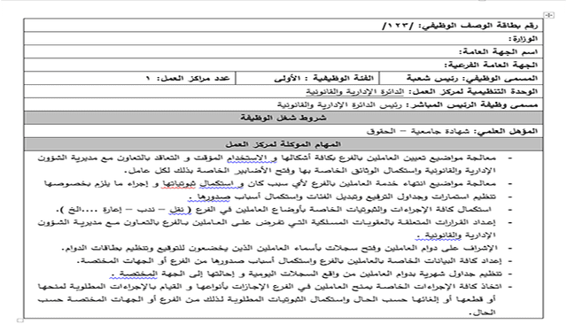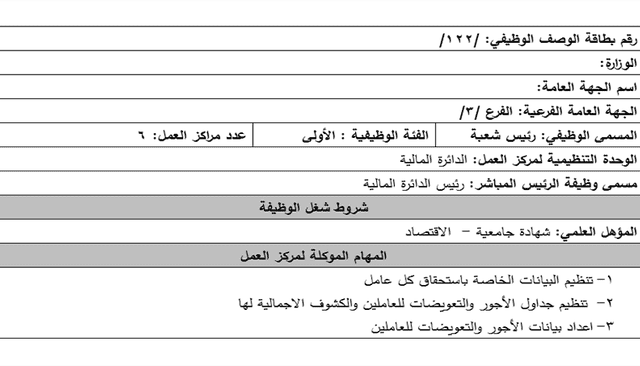 وصف وظيفي أحترافي حسب معايير الموارد البشرية