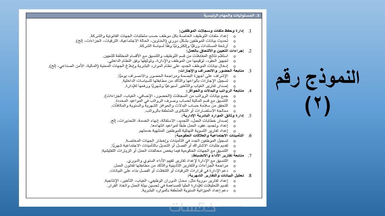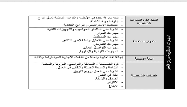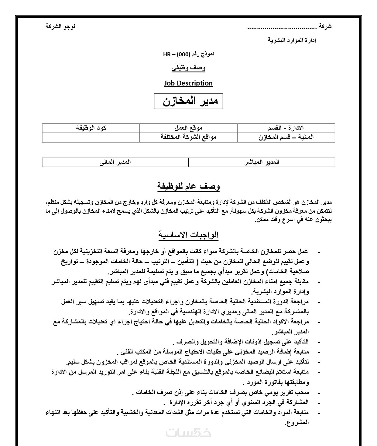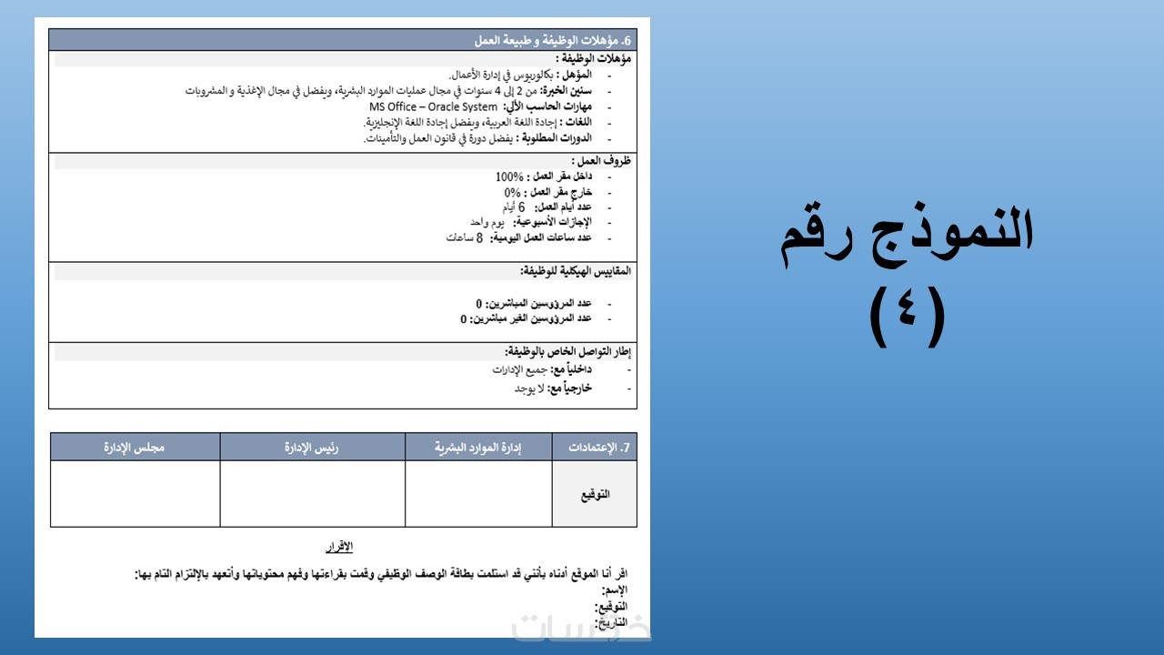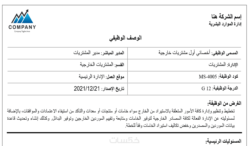 وصف وظيفي أحترافي حسب معايير الموارد البشرية