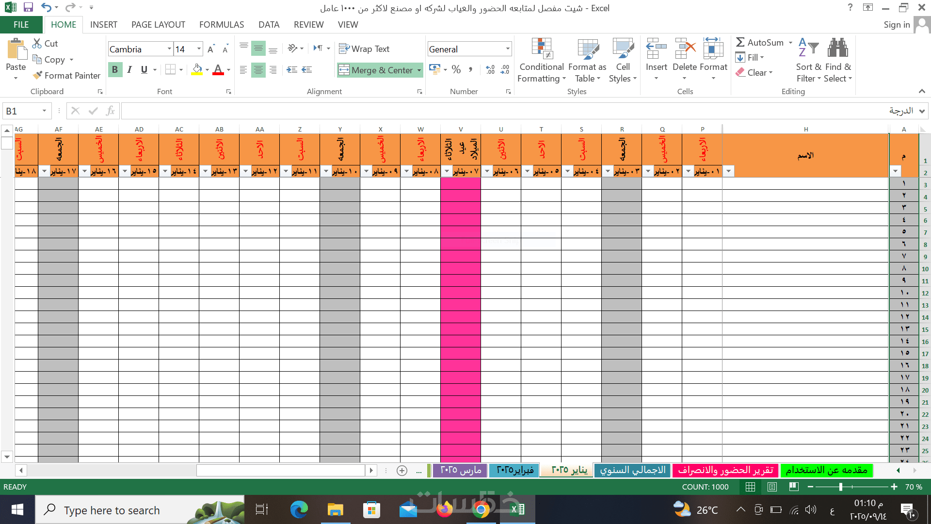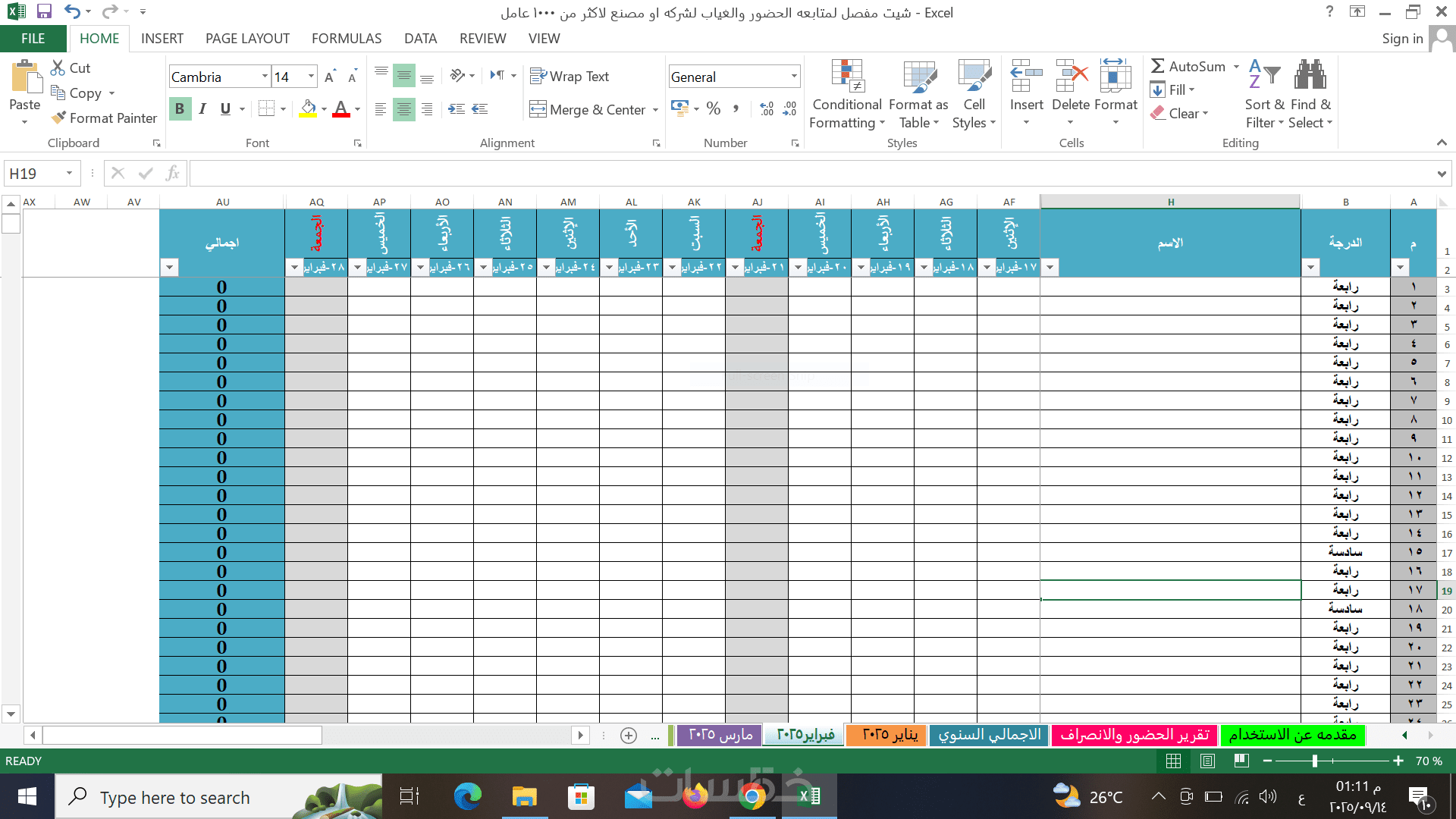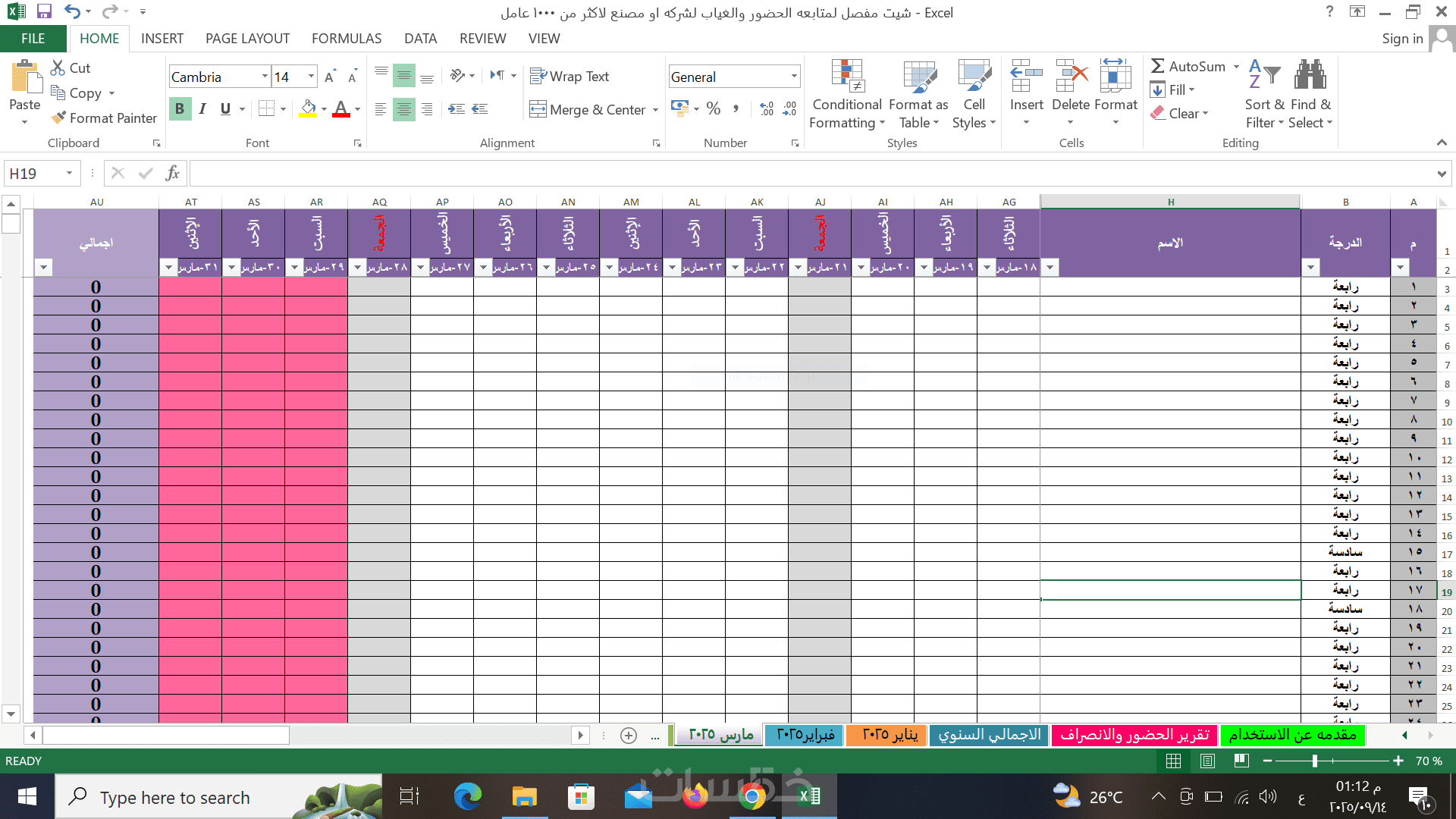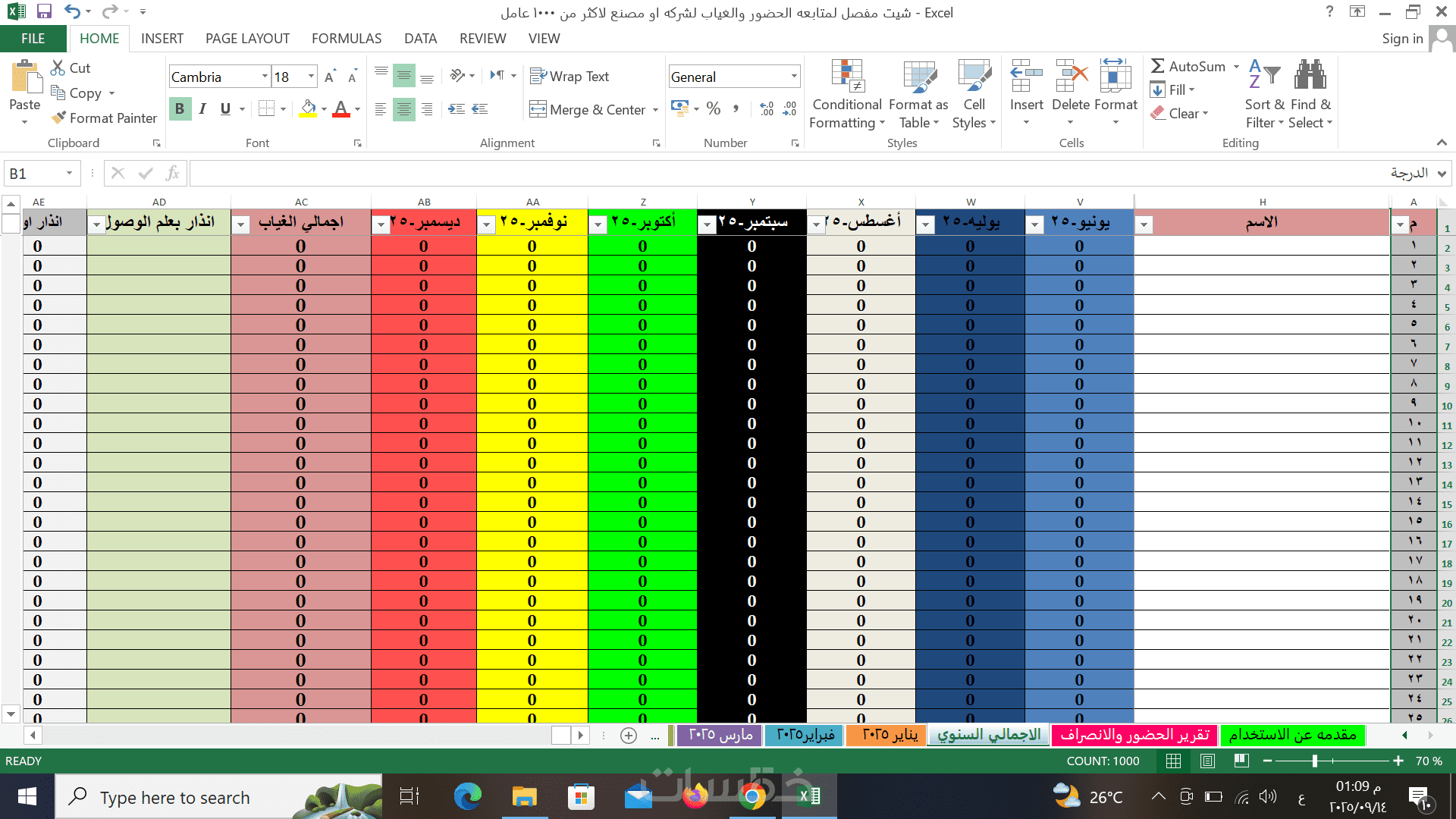 اقدم لك شيت اكسيل متكامل لمتابعة الحضور والغياب للموظفين