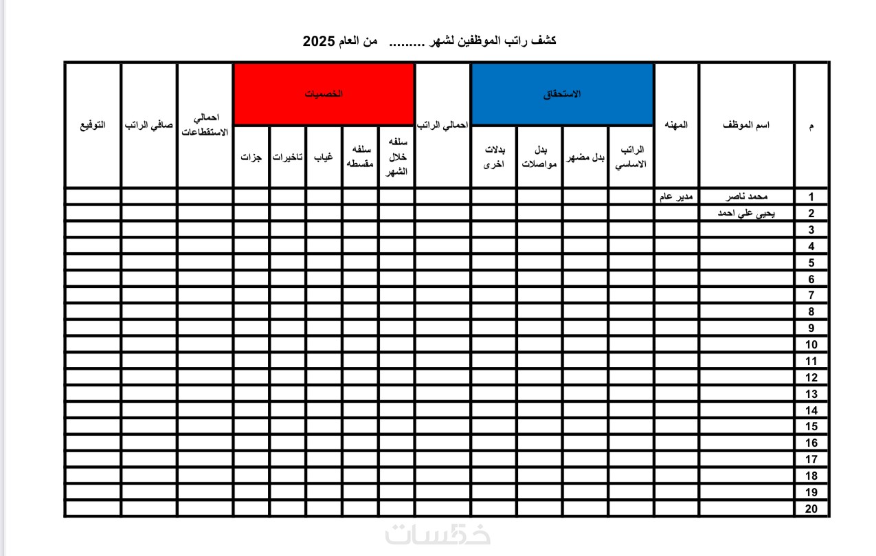قالب اكسل كشف راتب شيت حسب المعايير المحاسبيه المعتمد