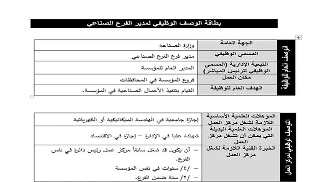 إعداد الأوصاف الوظيفية الإدارية والفنية job description