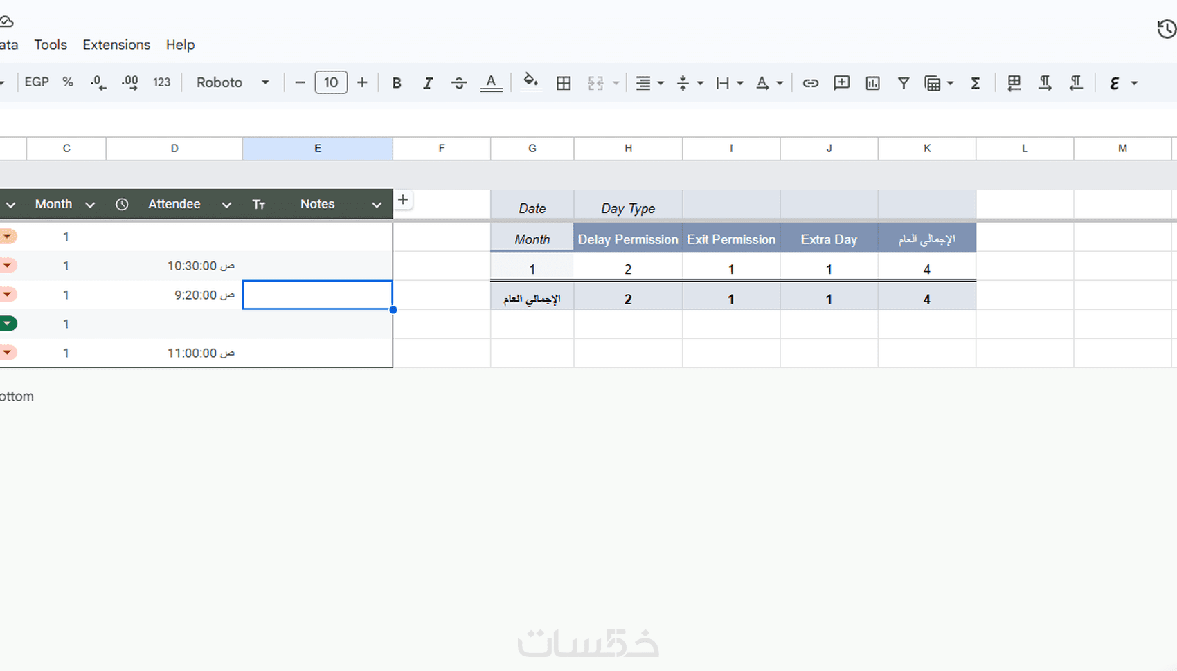 شيت لمتابعة ايام الحضور والانصراف