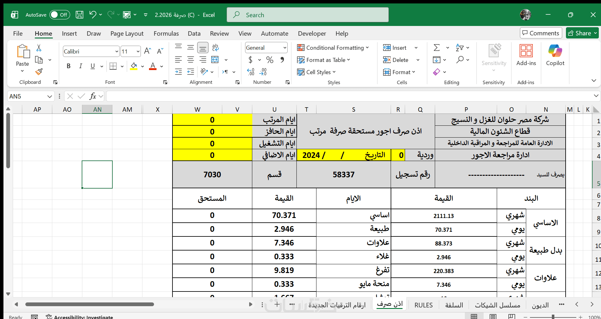 • إعداد ملف رواتب احترافي على Excel.