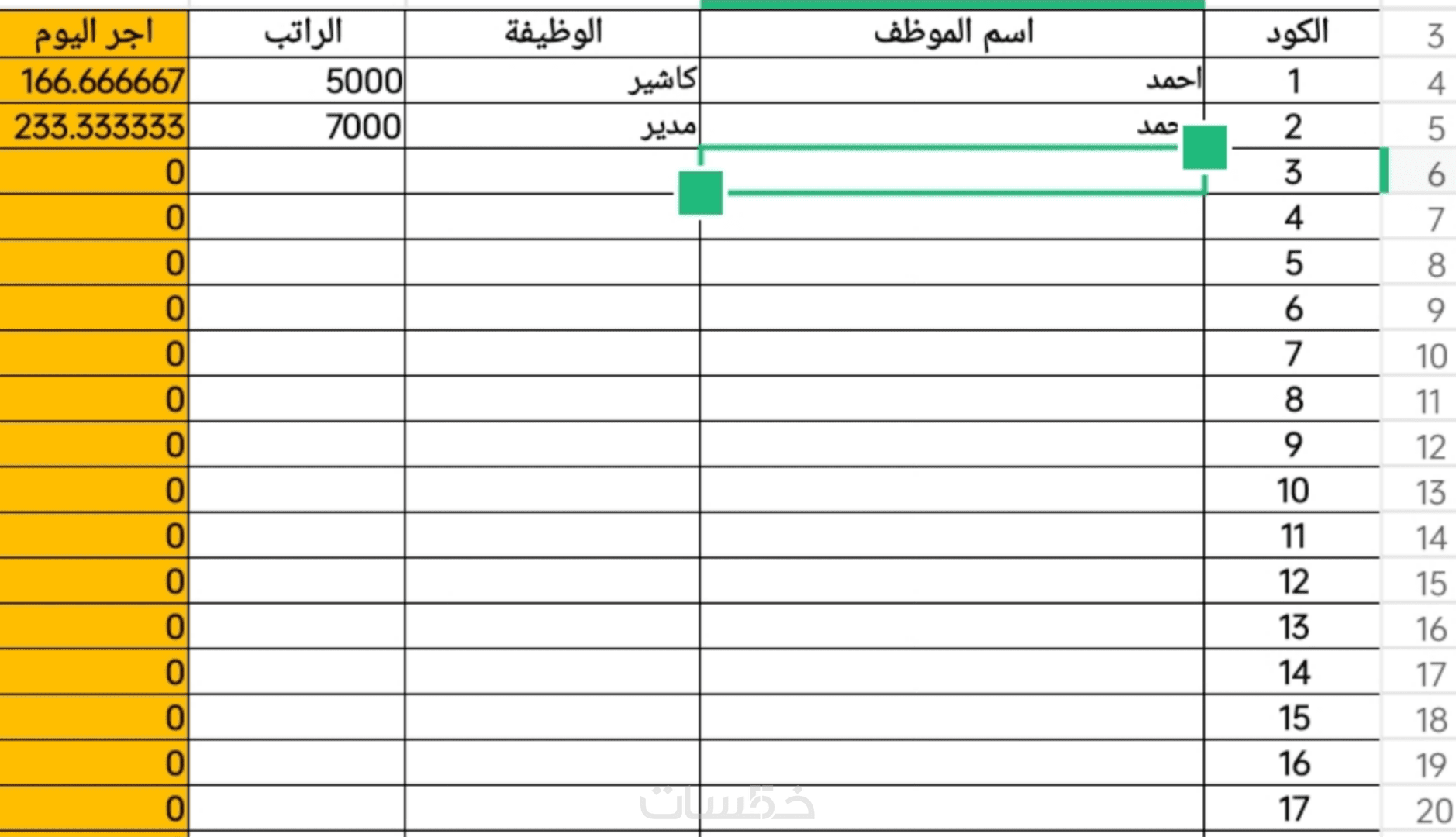 شيت مرتبات حتى 20 موظف مع إدخال البيانات (الأسماء – الرواتب – الحضور والغياب) وتجهيز الملف بالكامل ليكون جاهز للاستخدام.