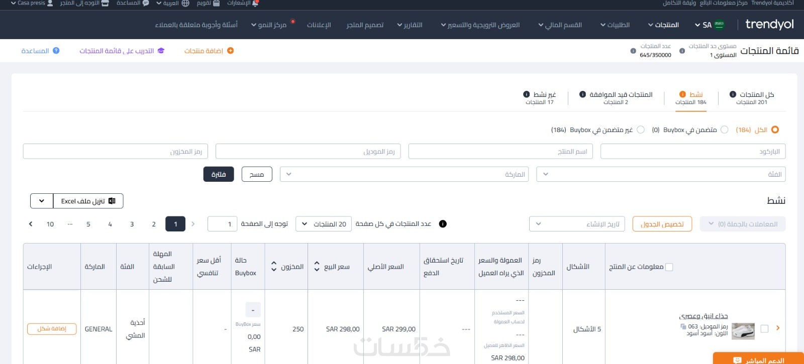 ارسل لي يوزر الحساب على ترنديول وملف اكسل يحتوي على اسم المنتج وصورة المنتج وسعر وكمية المنتج