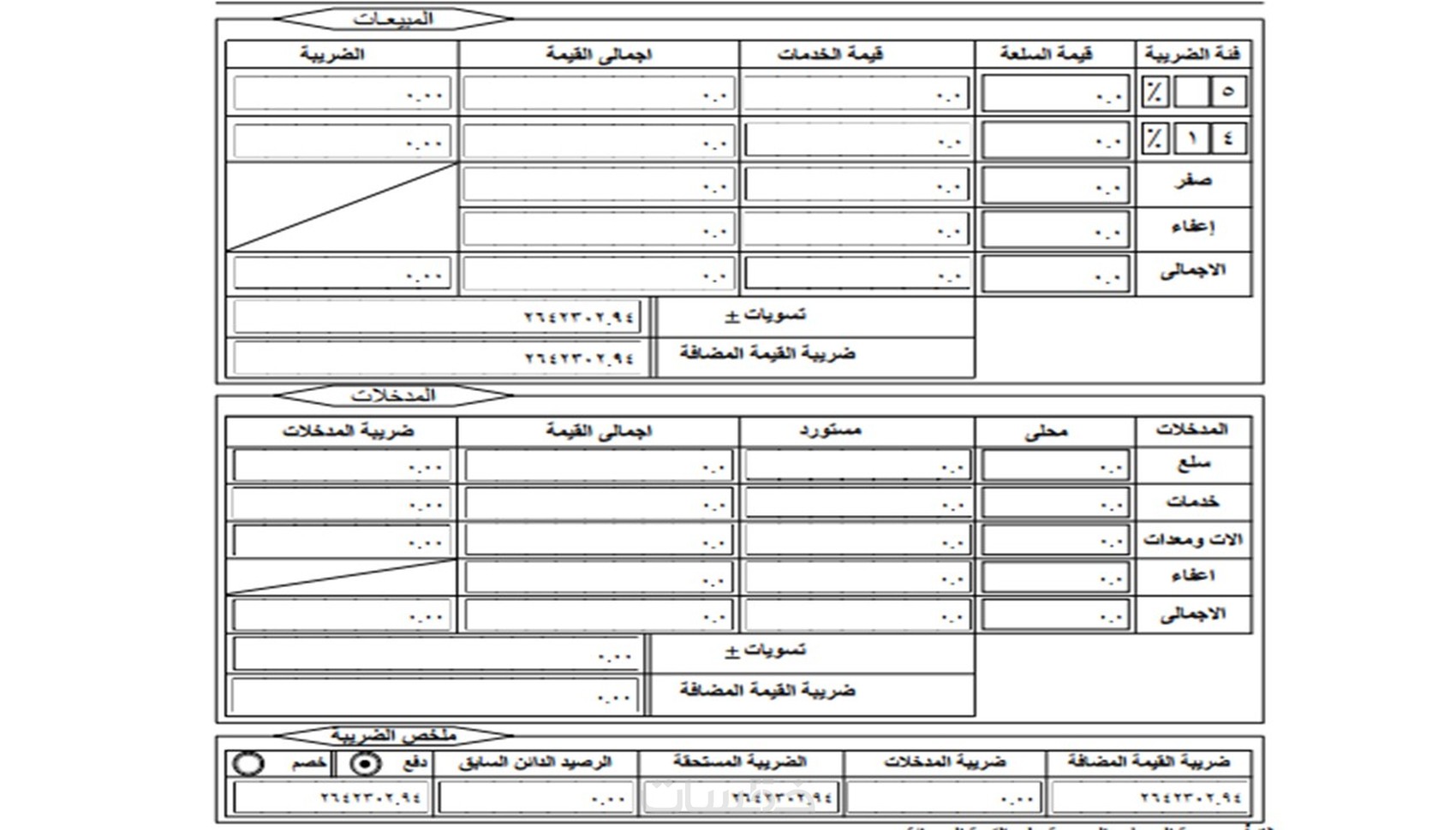 عمل اقرار ضريبة القمية المضافه عن طريق عمل :