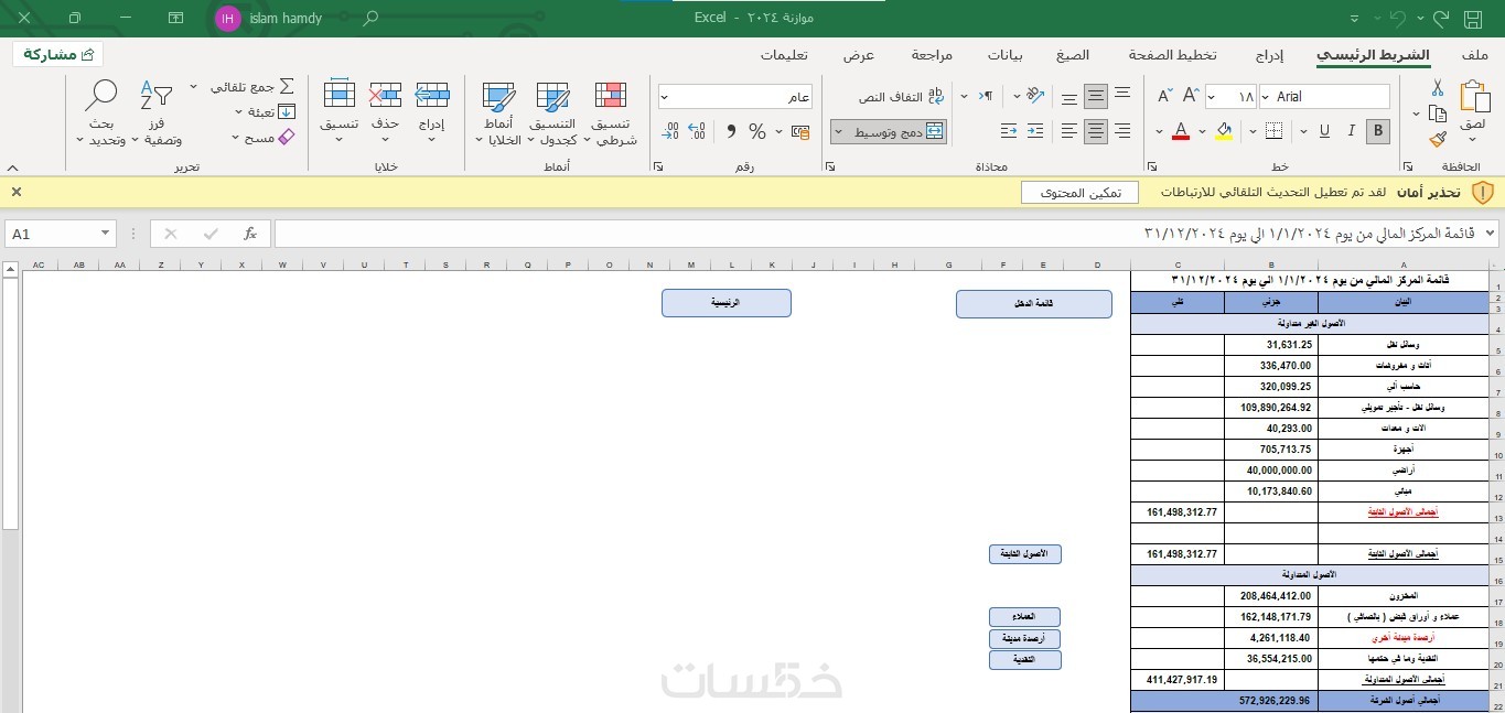 اعداد تقرير مالى كامل يشمل اعداد الميزانية العمومية , قائمة الدخل , و تحليل مبسط للاداء المالي