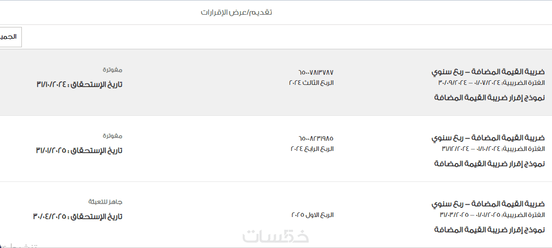 •. الخدمة متاحة للنوعين (الإقرار الشهريـالإقرار الربعي)