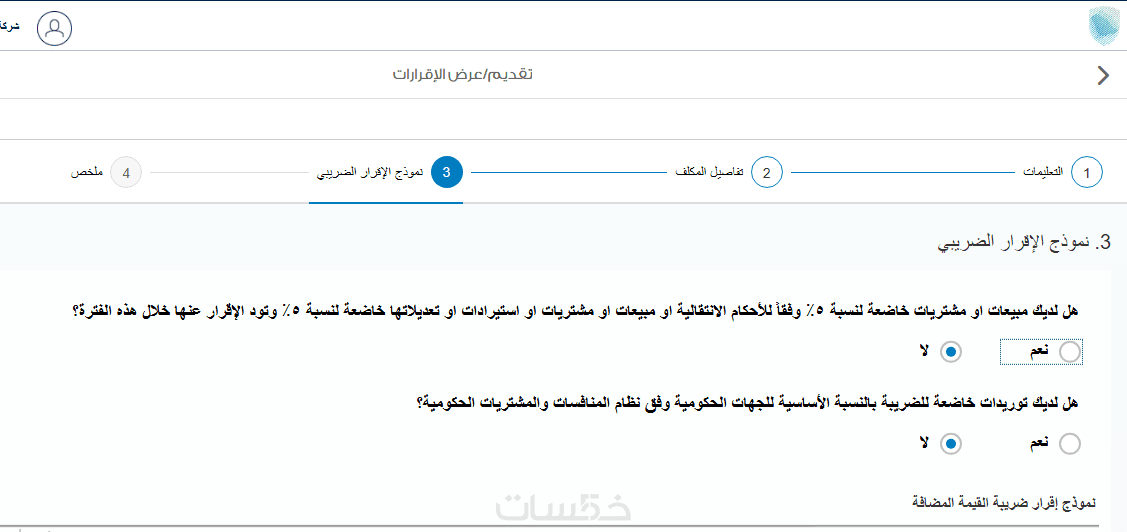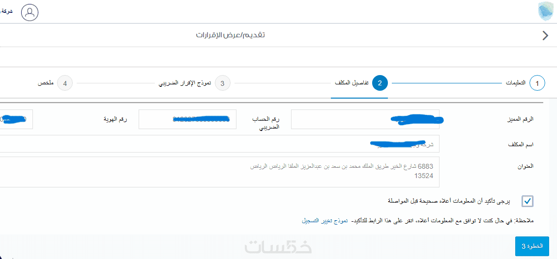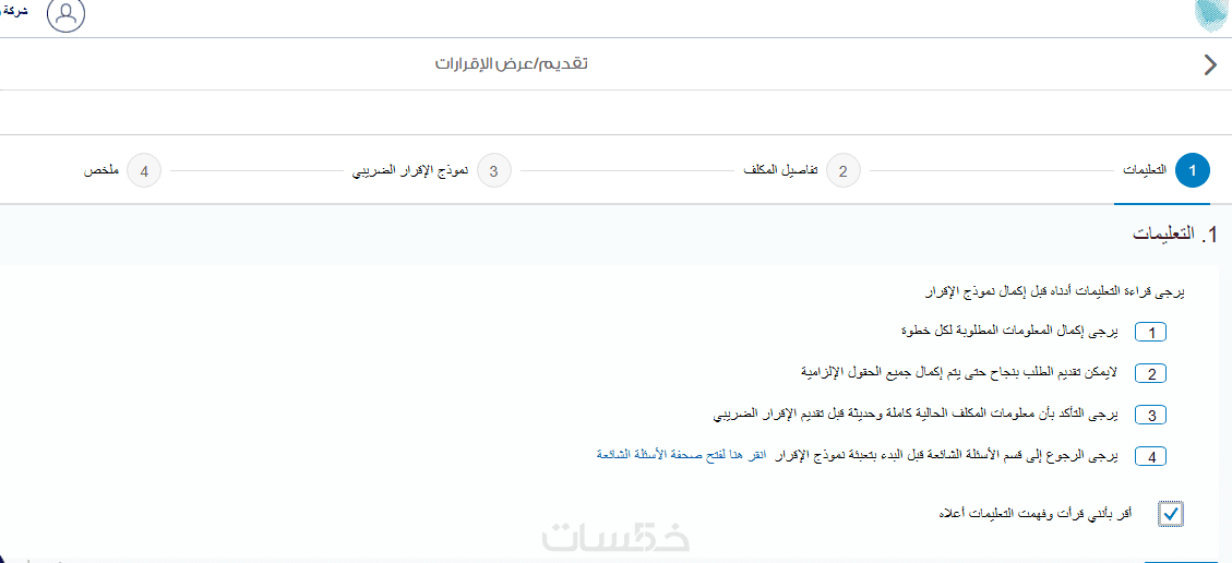 . الخدمة لا تشمل تقديم الإقرار على منصة الهيئة