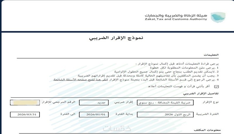 تقديم الاقرار الضريبي الصفري علي موقع الزكاه و الضريبه و الجمارك في المملكه العربيه السعودية فقط