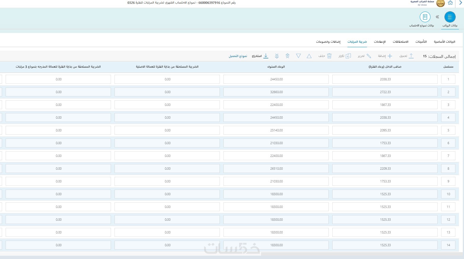 احتساب الضريبة المستحقة عن المرتبات عدد 30 موظف