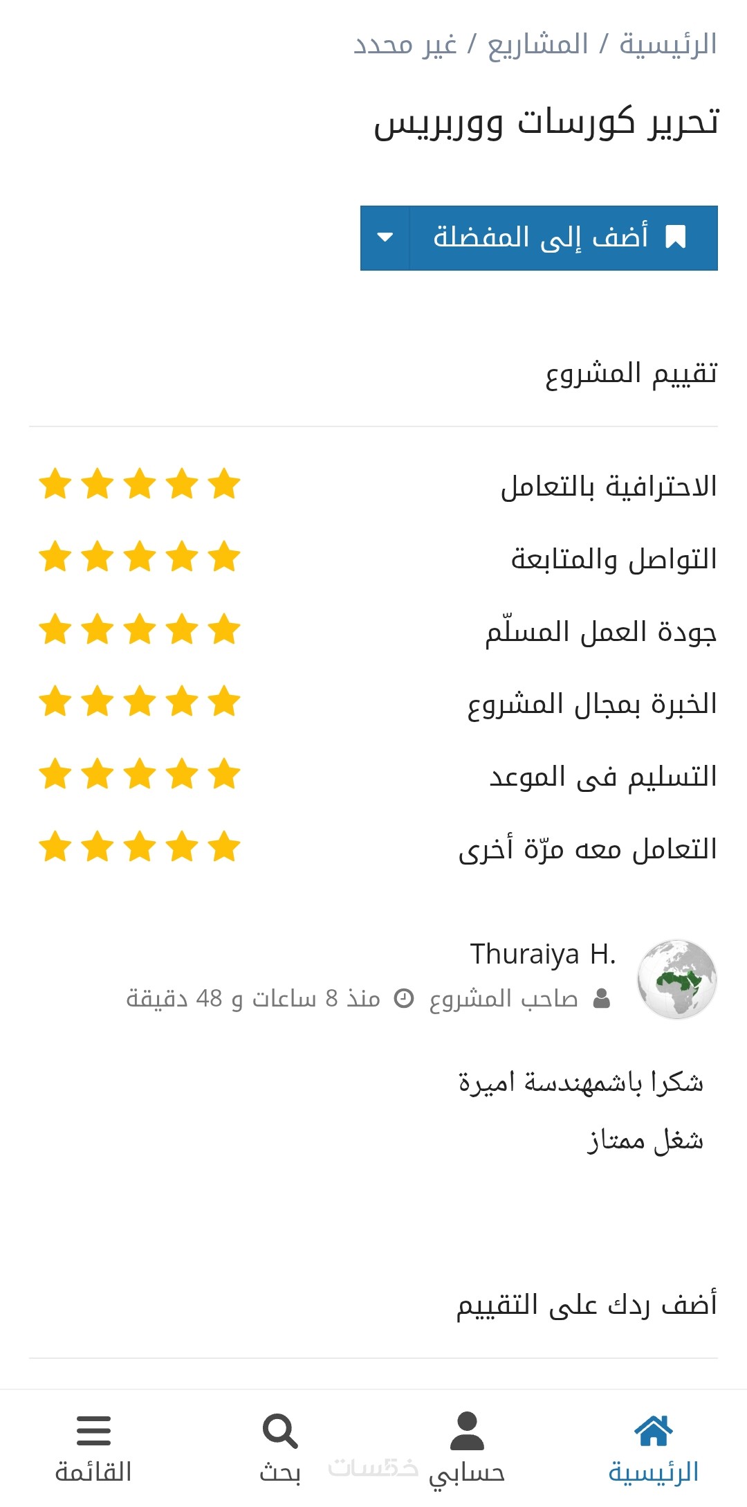 يوفر لك الاطلاع على الأعمال السابقة للبائع فرصة لتقييم خدماته المشابهة لما تطلب والتأكد من إتقان العمل وجودته.