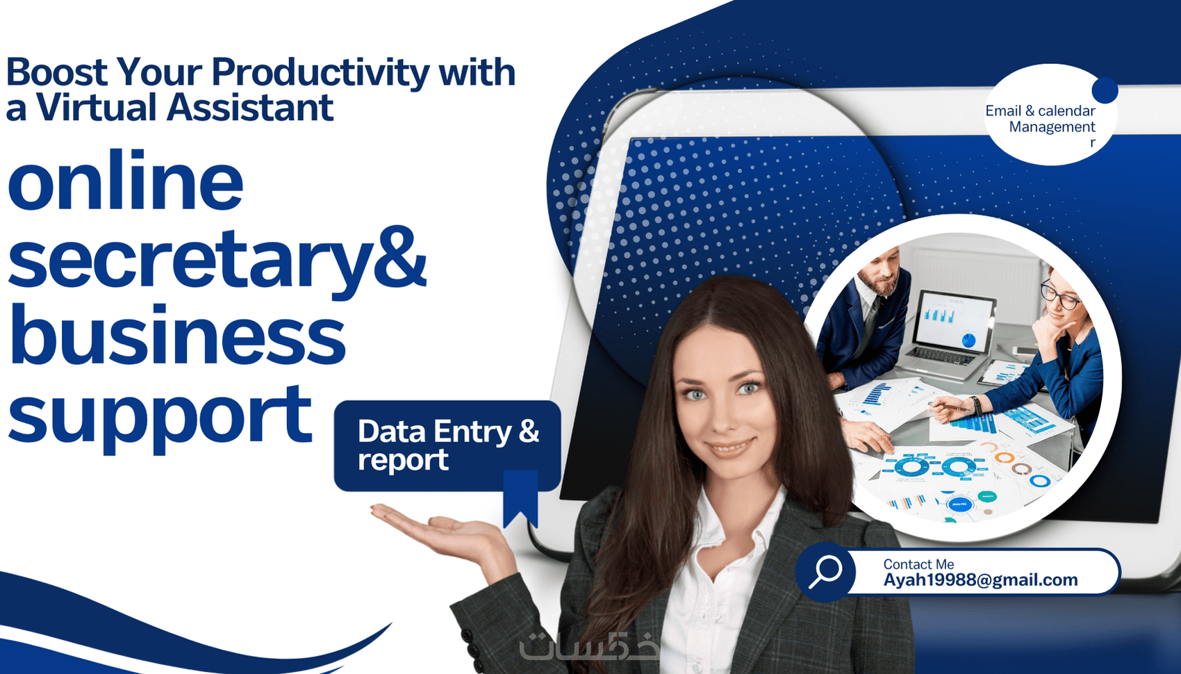 هل تبحث عن مساعد افتراضي يساعدك في مهامك الشخصية والمهنية؟ هل ترغب في الاستعانة بمساعد افتراضي ينجز أعمالك الروتينية والمتكررة لتتفرغ لإدارة نشاطك التجاري؟ استعن الآن بخدمات عشرات المحترفين الموجودين على موقع خمسات والمستعدين لمساعدتك في تنظيم شؤونك وتنفيذ مهامك وتنمية أعمالك بوقت قياسي وأسعار عادلة في متناول الجميع.