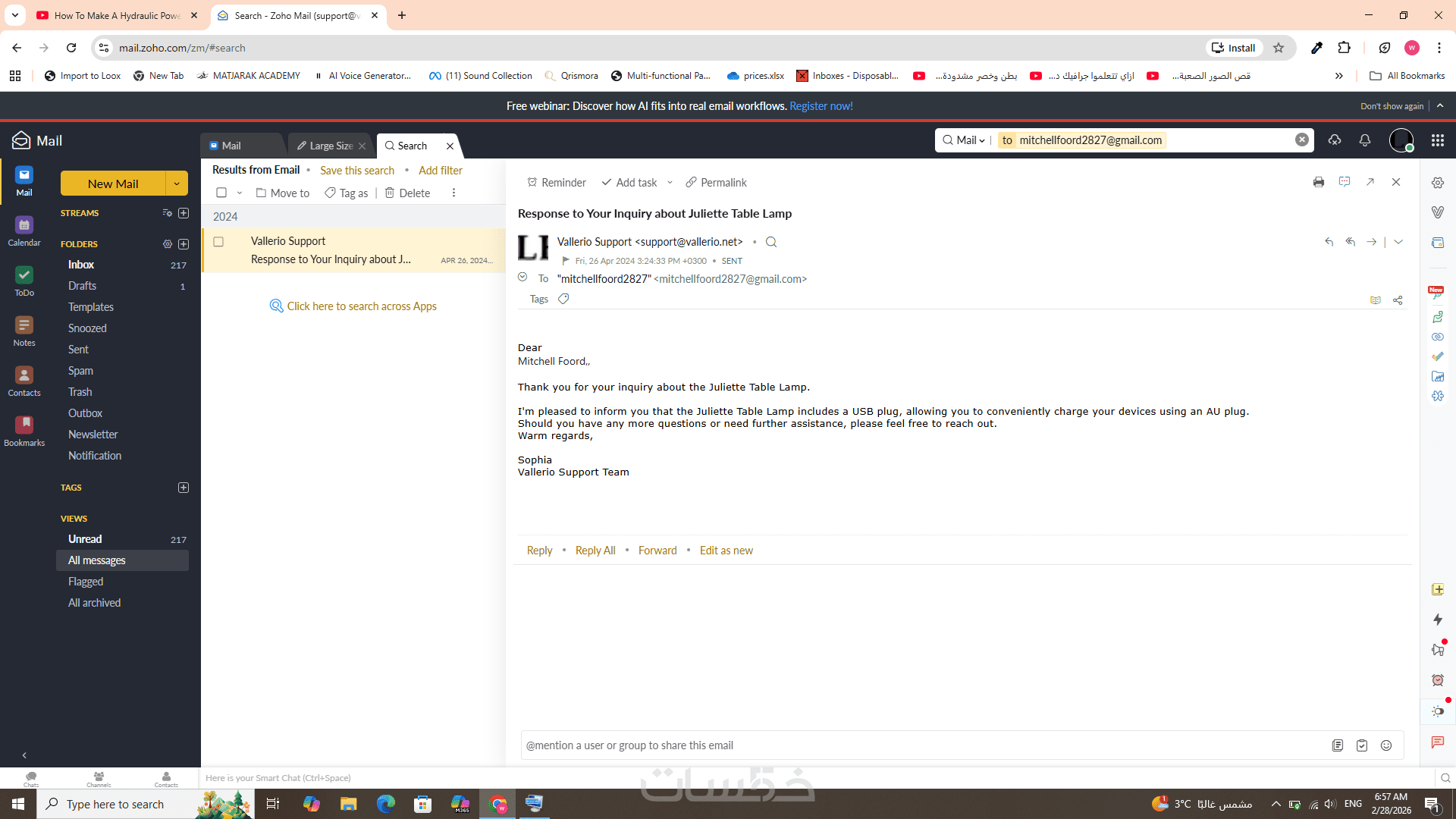 2. إدارة البريد الإلكتروني (تصنيفه، الرد على الرسائل المهمة، وتذكيرك بالمهام الأساسية).