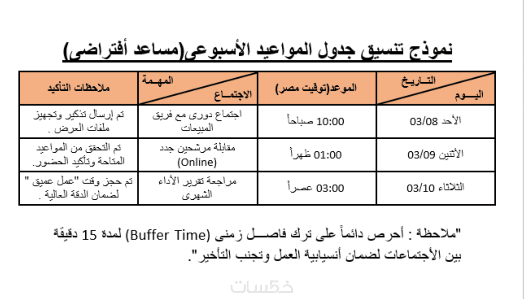 الدقة والالتزام التام بالمواعيد.