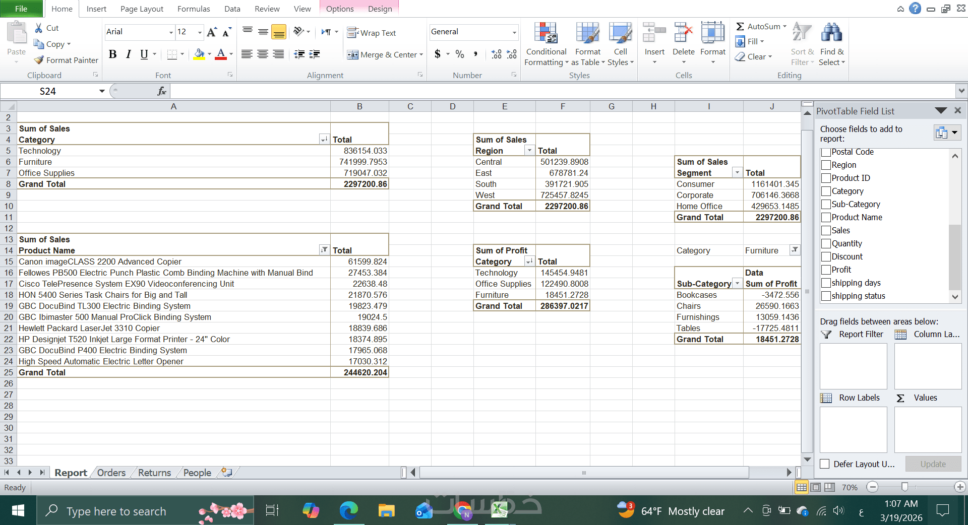 شيت التحليل pivot tables