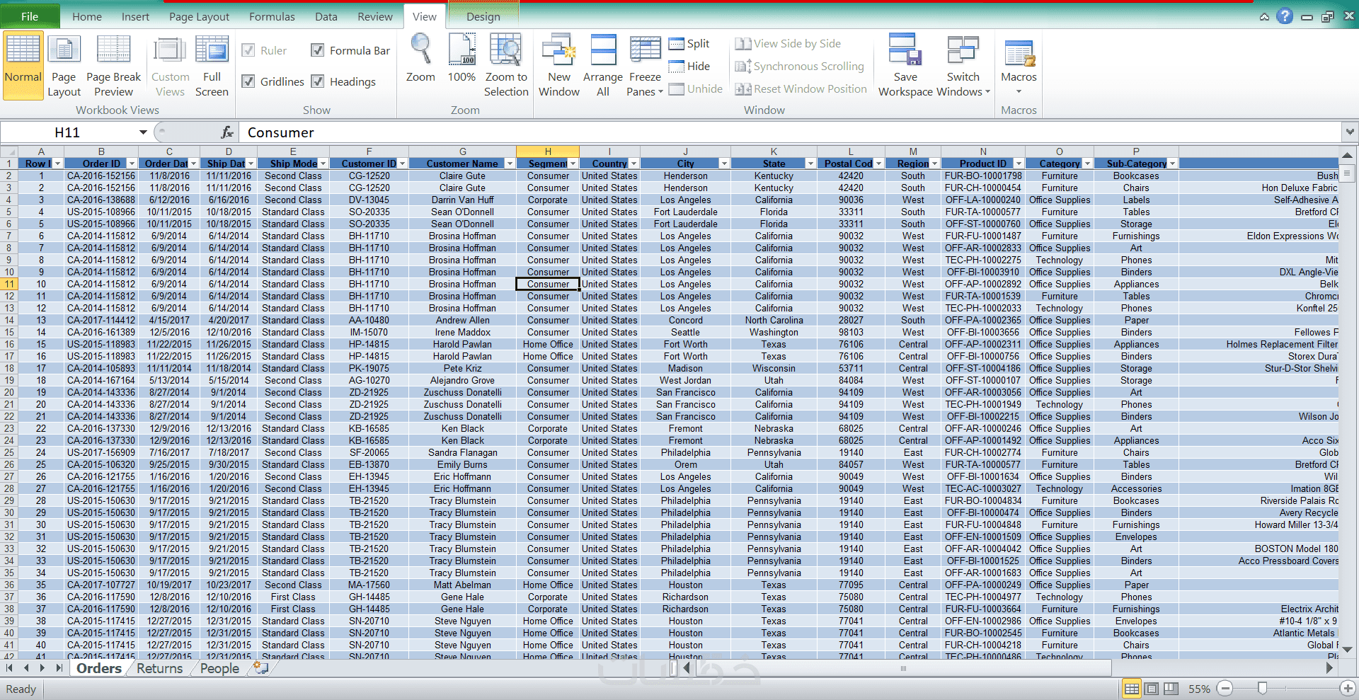 على شكل table يسهل استخدامه لعمل تحليل للبيانات