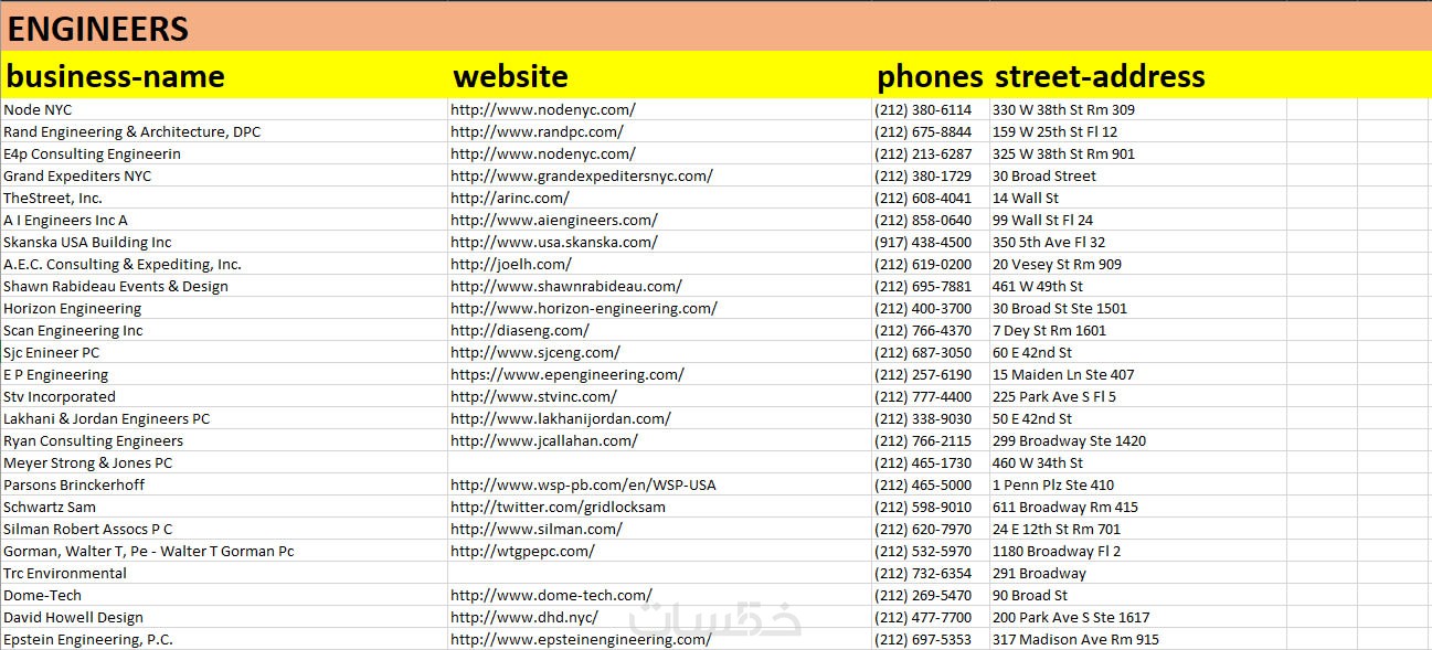 20شركة في ملف اكسل مفتوح المصدر