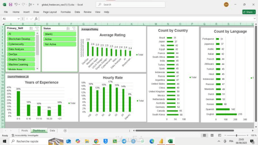 تصميم Dashboard احترافية وتحليل بيانات على Excel