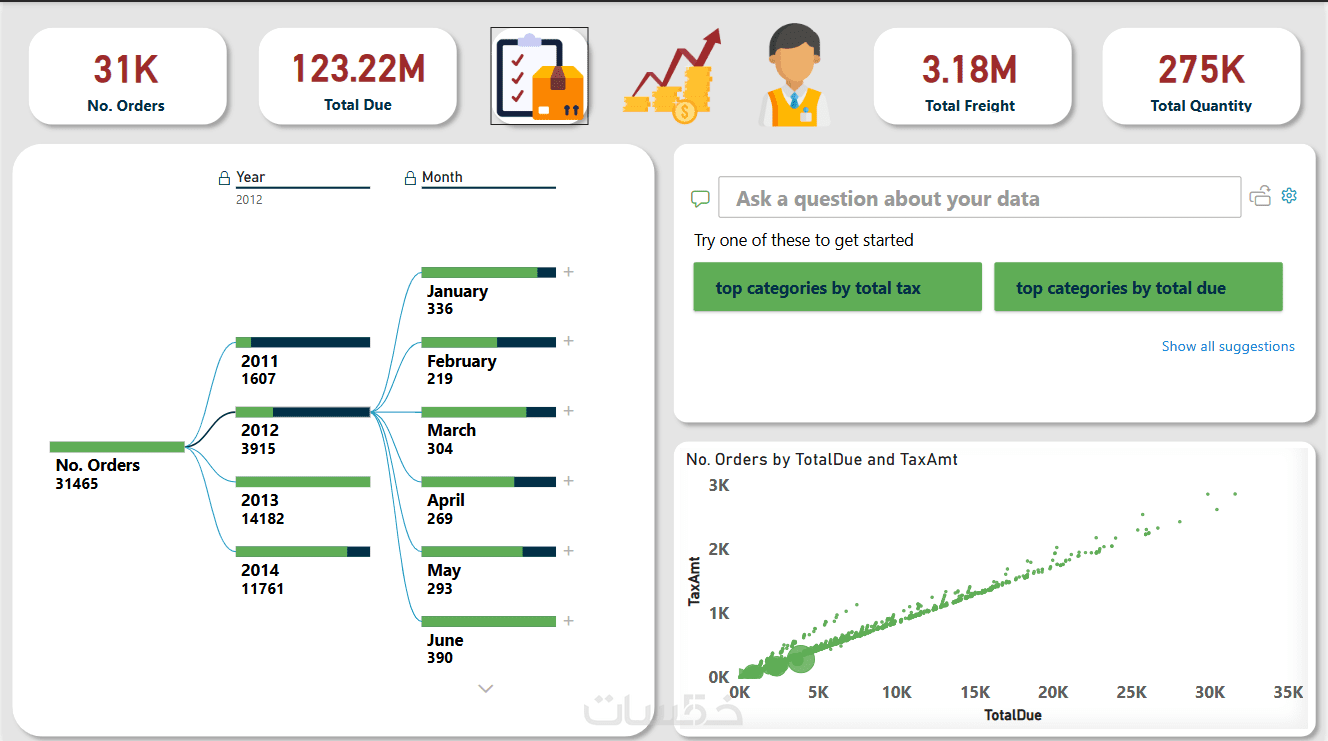 لوحات تحكم تفاعلية: إمكانية التفاعل مع البيانات (فلترة، drill-down، drill-through) للحصول على رؤى متعددة الأبعاد.