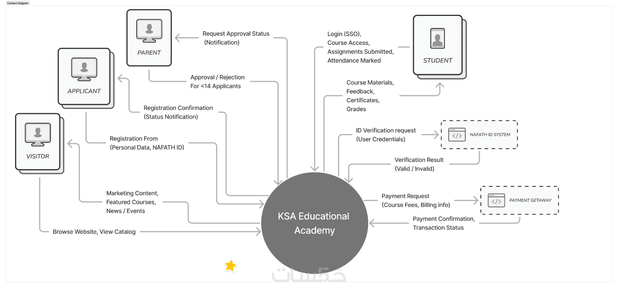 ملف مرفق بصيغة PDF أو Word يحتوي على شرح لكل مخطط في صفحة مستقلة تقريبًا، موضح فيها الهدف منه والعلاقات بين العناصر داخل النظام.