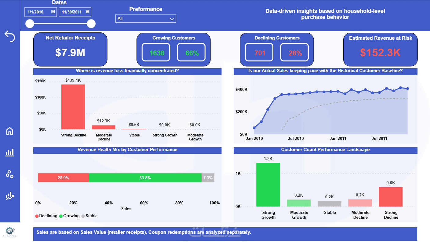 بحاجة لرؤية أرقام المبيعات/التسويق بشكل مباشر وتعرف وين الأداء أعلى ووين يحتاج متابعة، رح أبني لك صفحة Power BI تعرض أهم KPIs بشكل واضح.