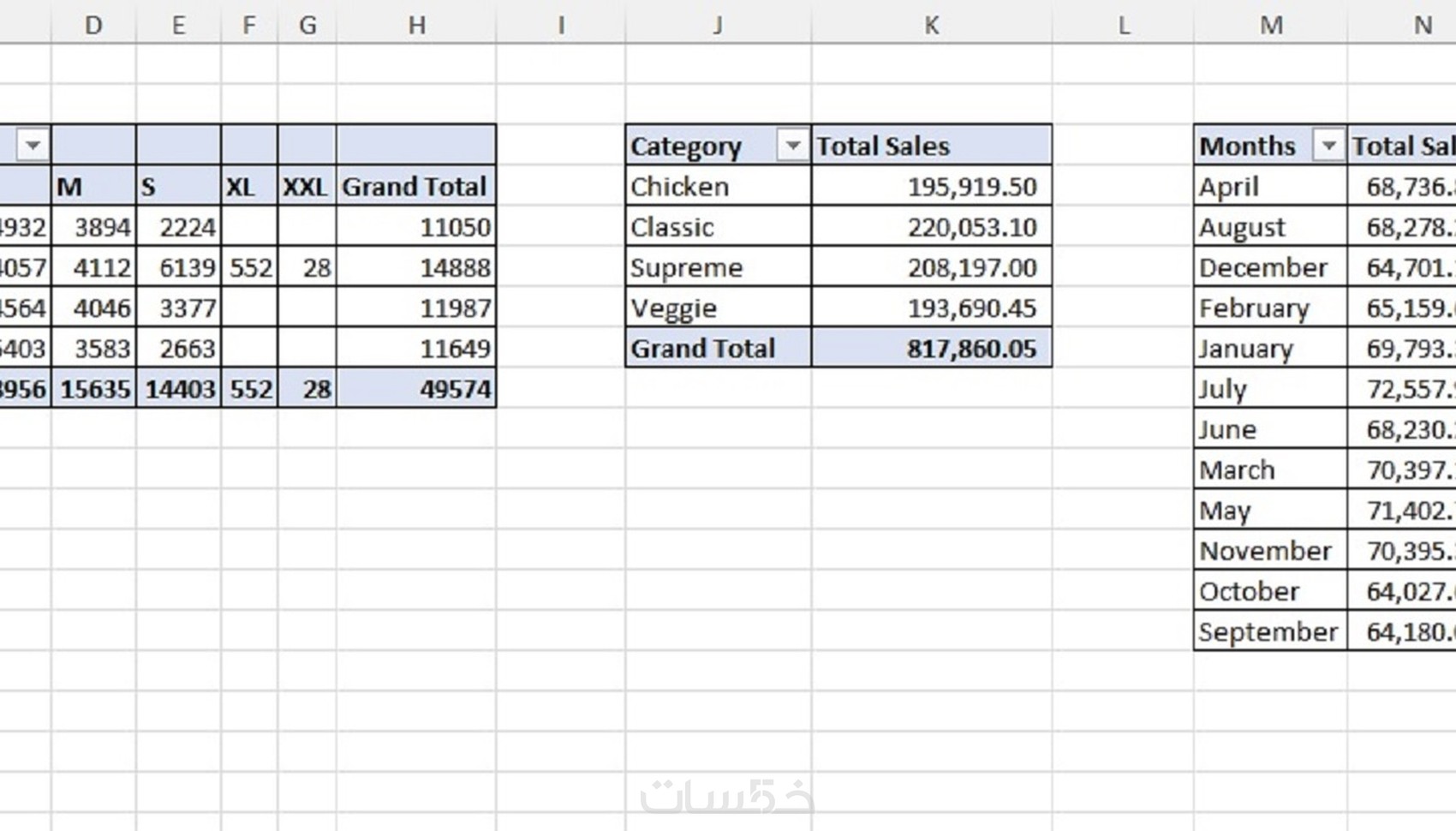 - شيت منفصل يحتوي على الجداول المحورية PivotTable التى تساعد فى انشاء لوحة البيانات