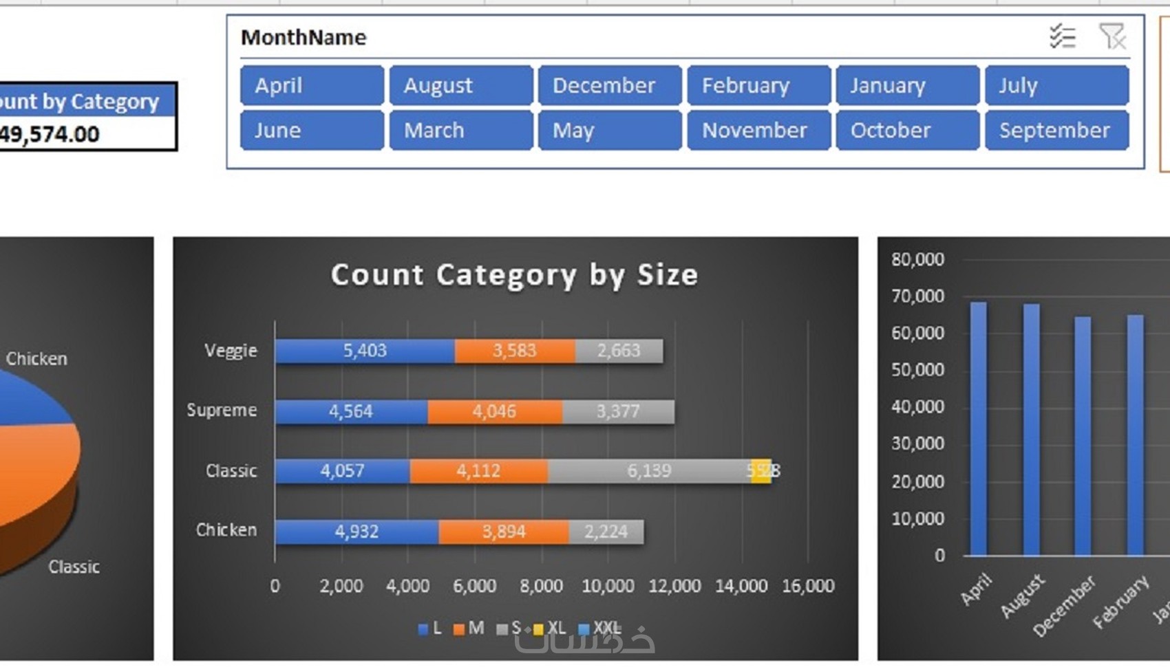- شيت منفصل يحتوي على لوحة البيانات Dashboard