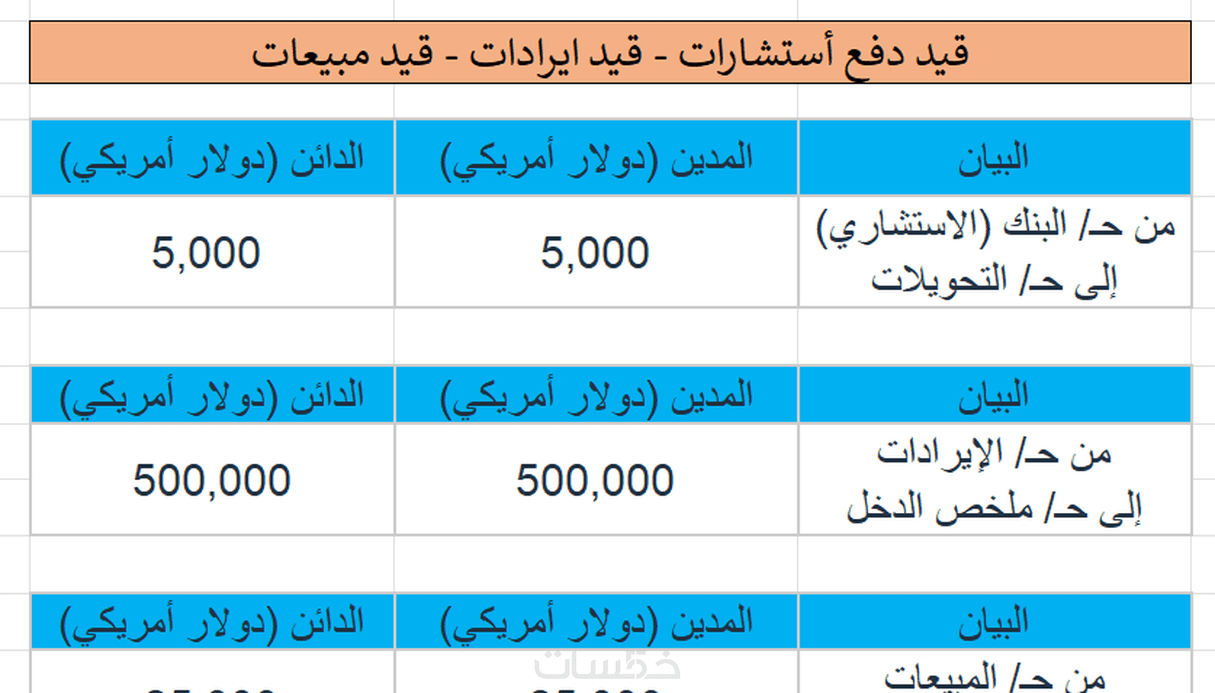 -عمل القيود اليومية على نظام الأكسيل الشيت