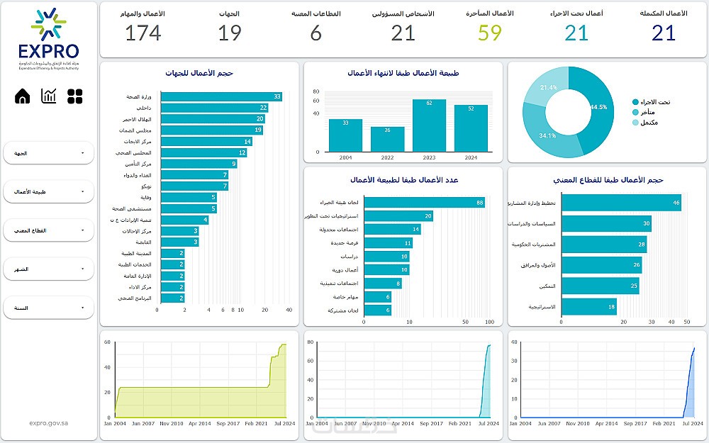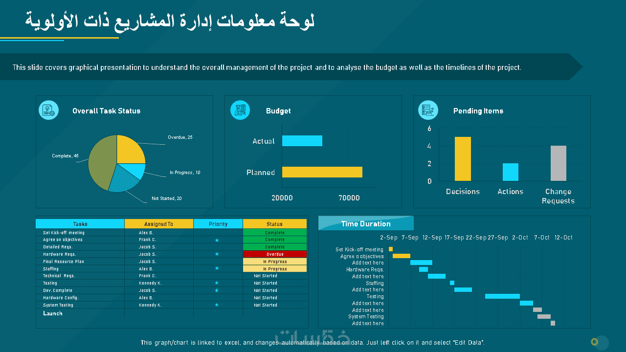 • لوحات لعرض بيانات المشاريع والتقارير الإدارية.