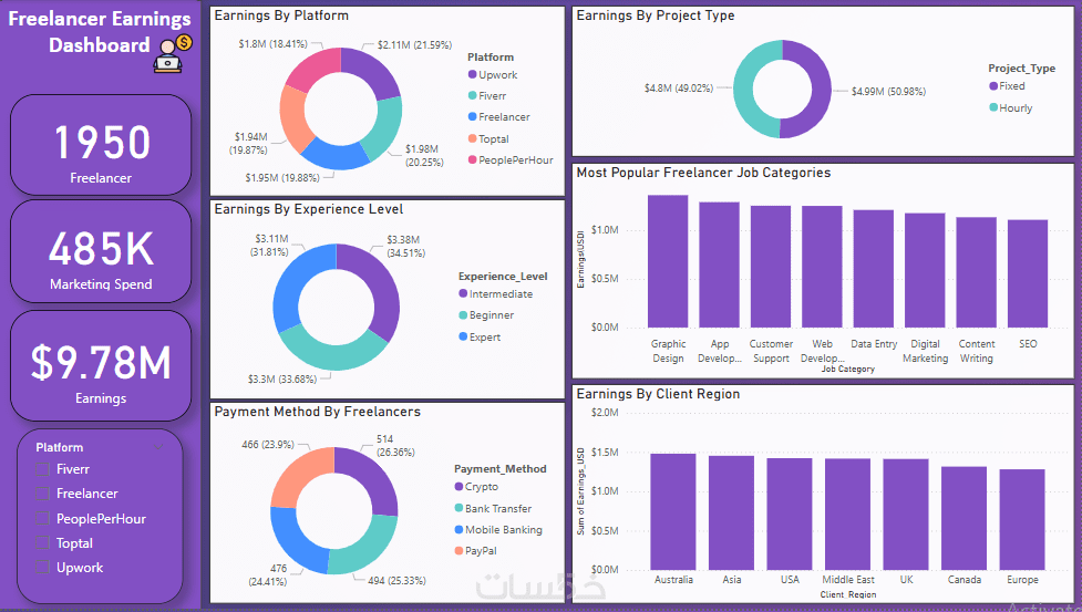 أقدم خدمة إنشاء لوحات تحكم (Dashboards) احترافية باستخدام Power BI أو Tableau لمساعدتك في تحليل بياناتك بسهولة وتحويلها إلى رؤى قابلة للتنفيذ.