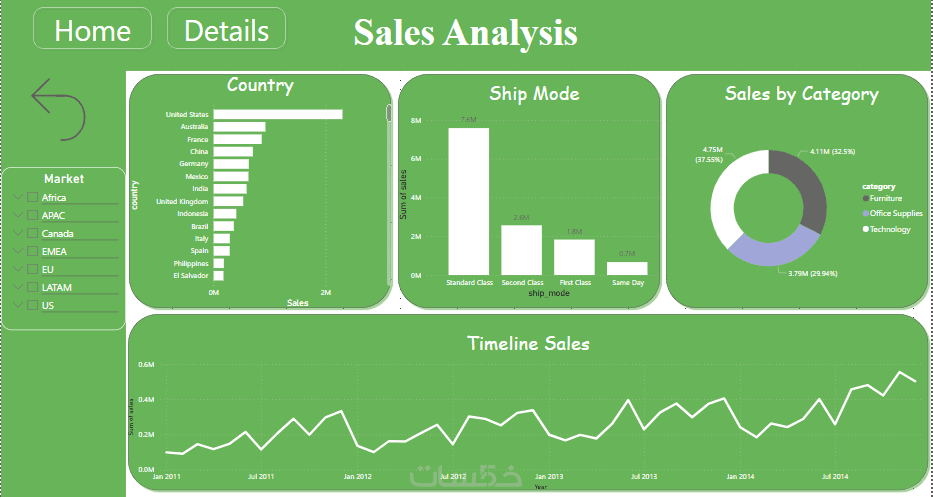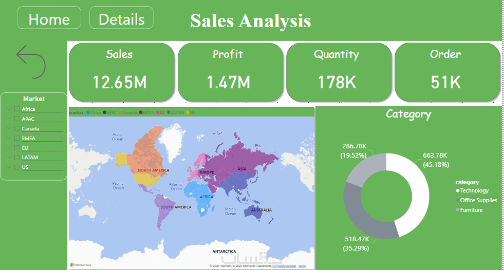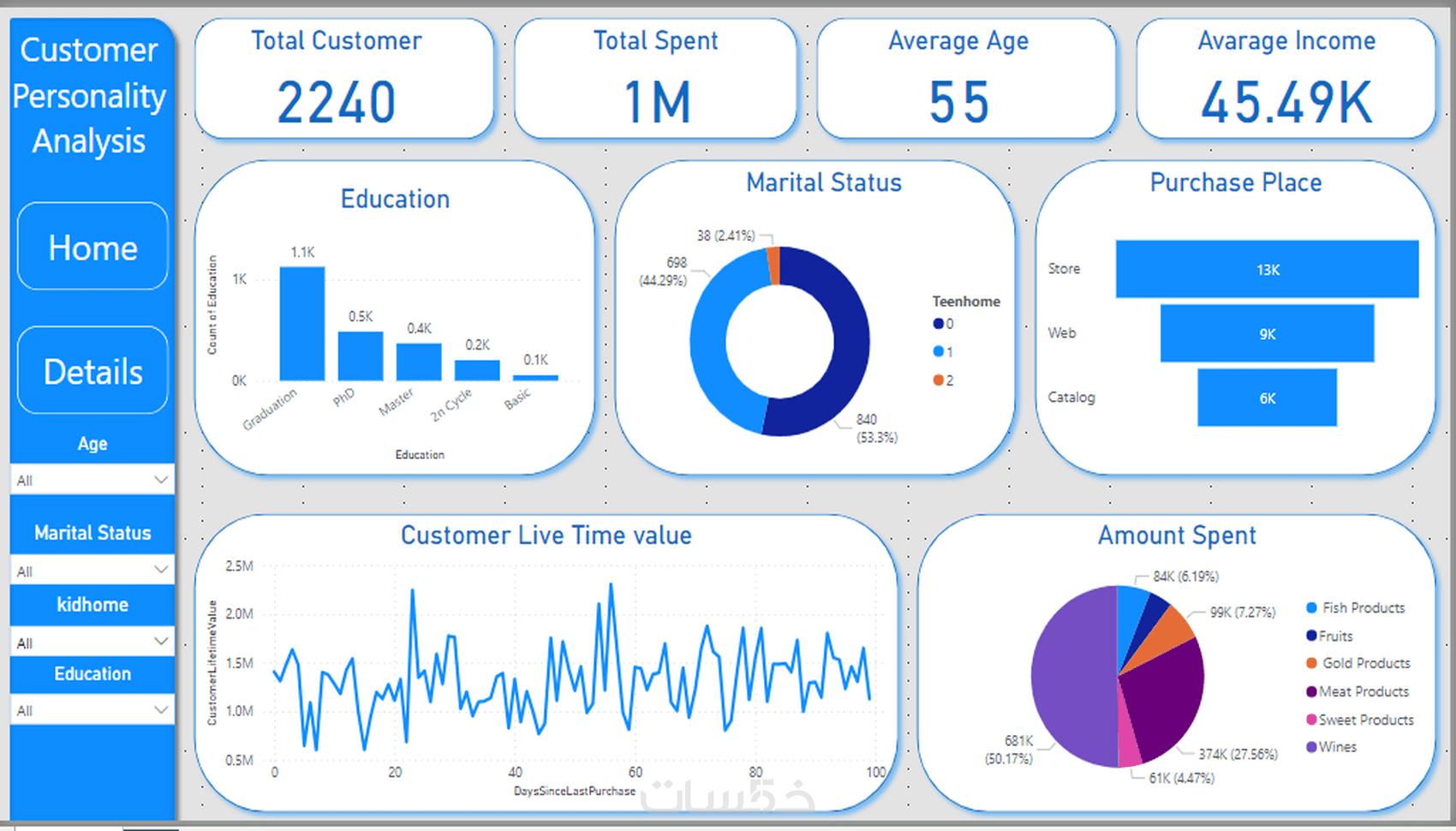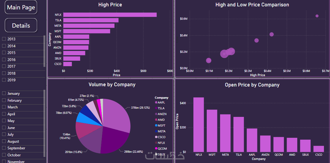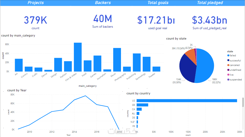 ساقدم لحضرتكم تقرير تفاعلي على برنامج power bi مكون من صفحة واحدة ويحتوي على خمسة رسوم بيانية